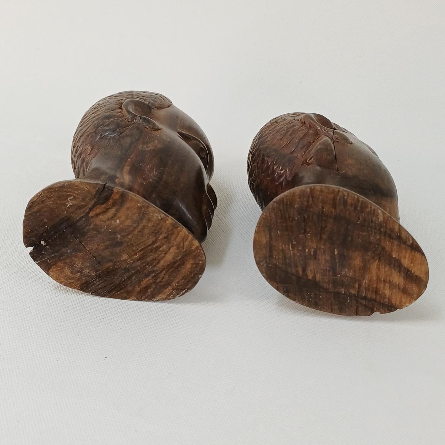 Είναι χειροποίητα από μασίφ ξύλο και έχουν ύψος περίπου 13 cm. Η ανδρική προτομή έχει ρωγμή στο πίσω μέρος, ενώ η γυναικεία προτομή είναι σε καλή κατάσταση.