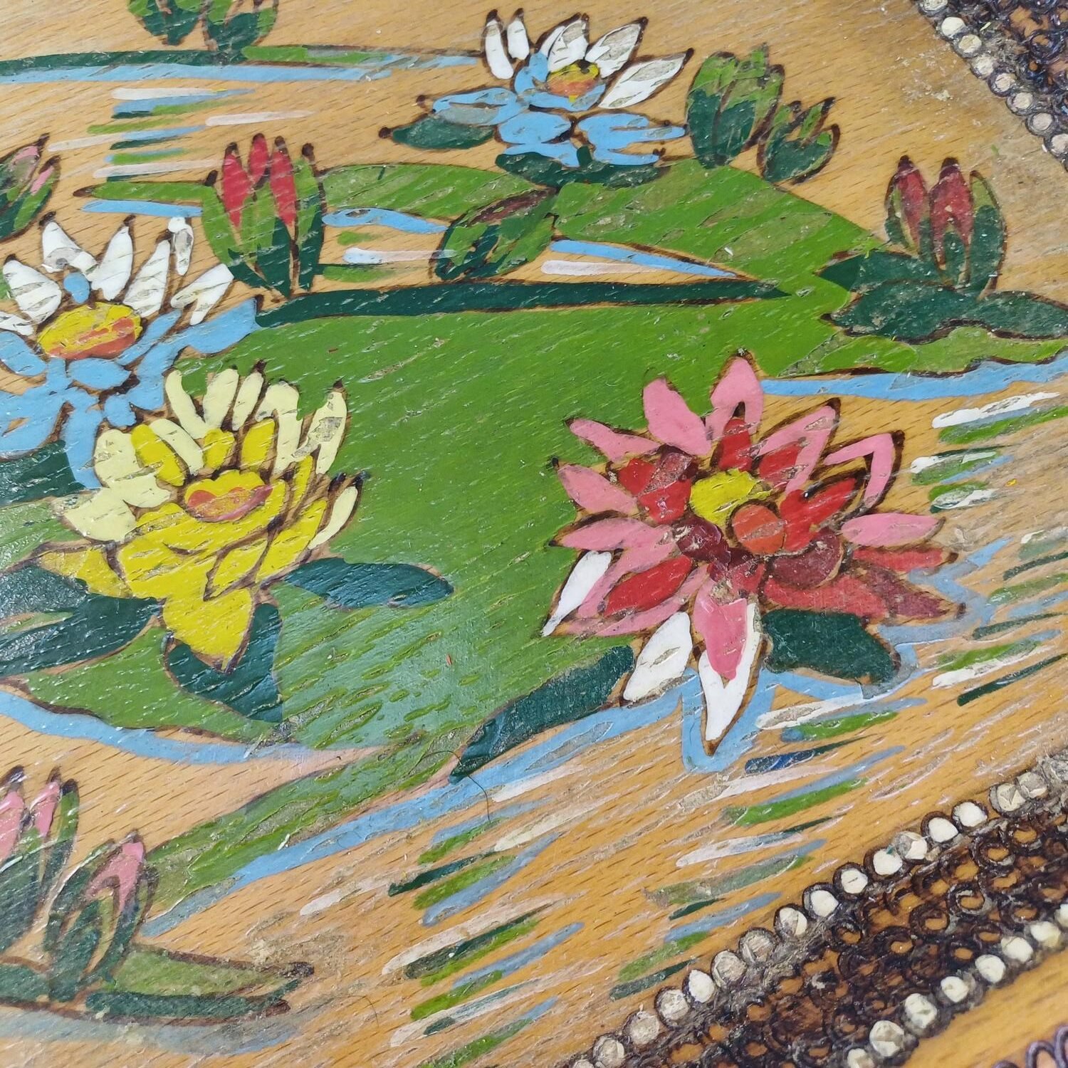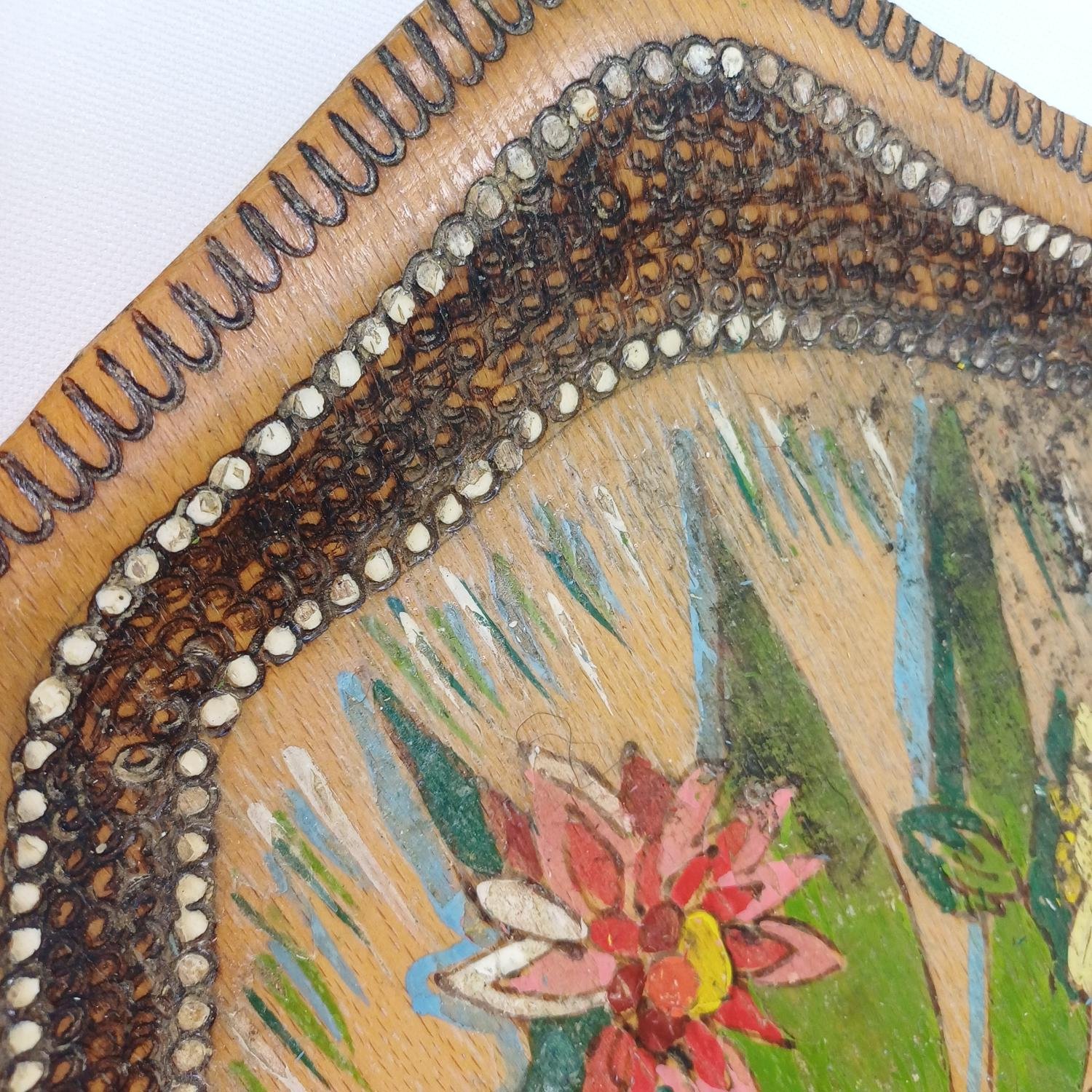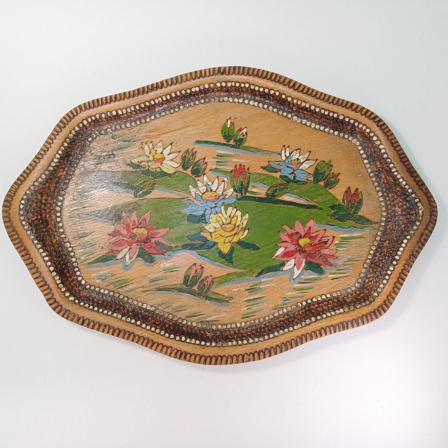 Ξύλινος δίσκος ζωγραφισμένος με λουλούδια