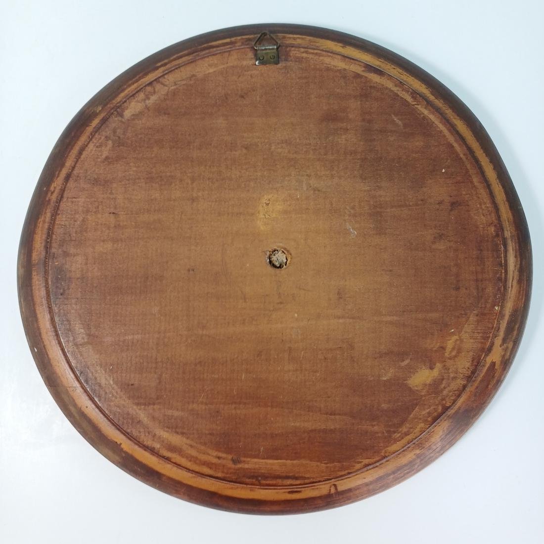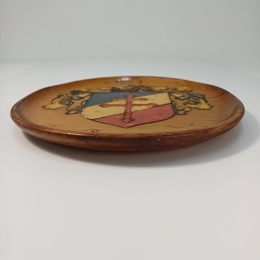 Το πιάτο είναι μεταχειρισμένο, η διάμετρός του είναι 24,5 cm και υπάρχουν κάποιες γρατσουνιές στη επιφάνεια του ξύλου λόγω παλαιότητας.