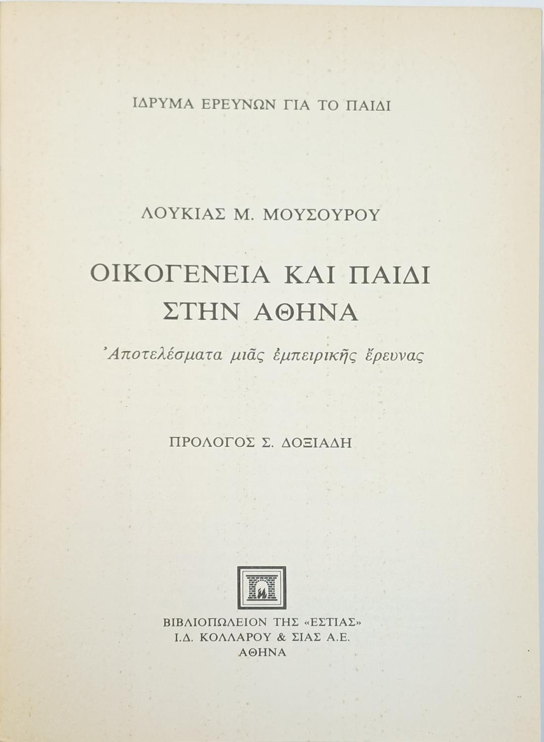 “Οικογένεια και Παιδί στην Αθήνα” Λουκία Μ. Μουσούρου (1985)