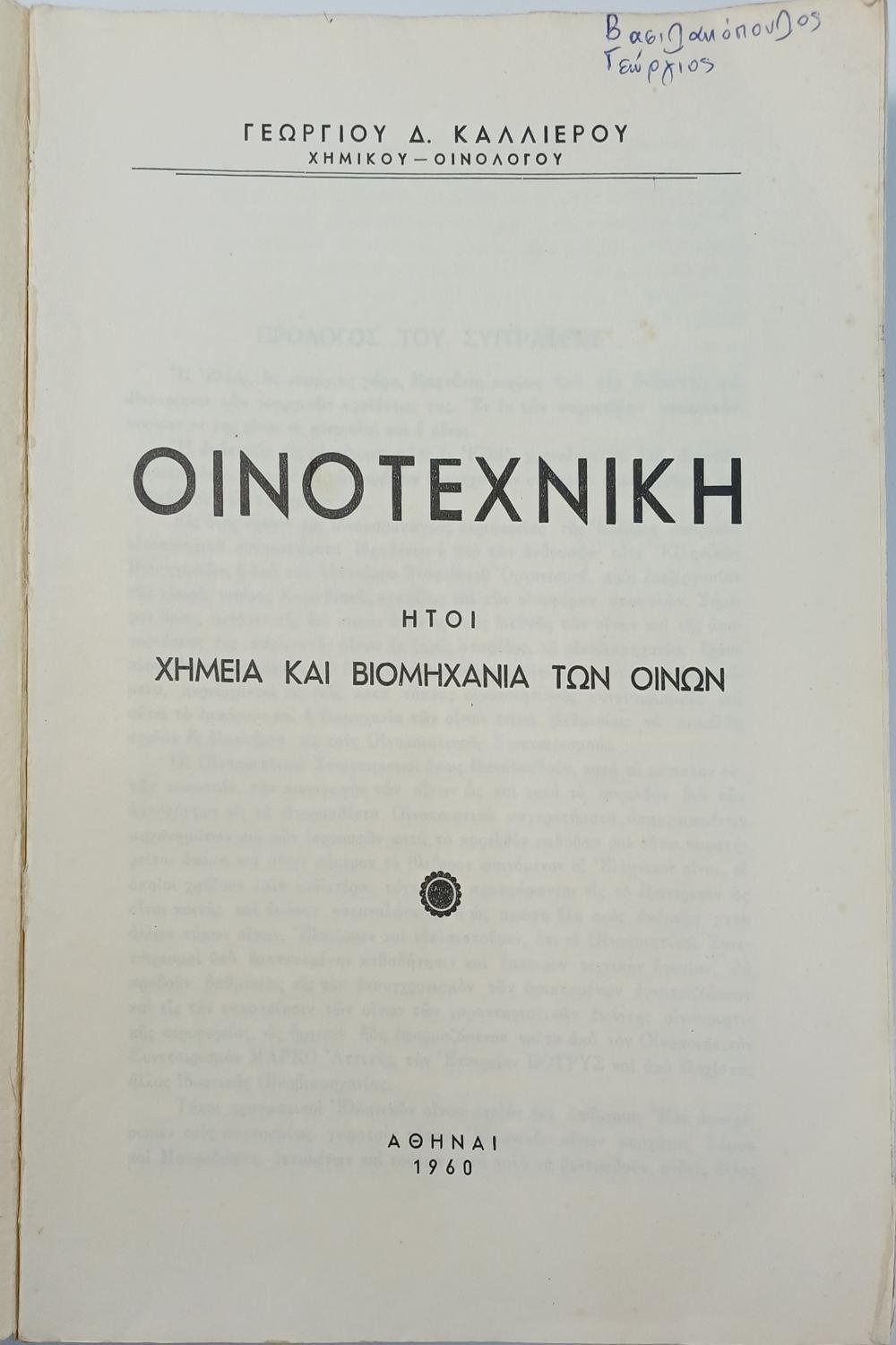“Οινοτεχνική” Γεώργιος Δ. Καλλιέρος (1960)