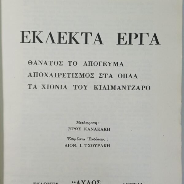 “Θάνατος το απόγευμα – Αποχαιρετισμός στα όπλα – Τα χιόνια του Κιλιμάντζαρο” (Τόμος 6) Έρνεστ Χέμινγουεϊ