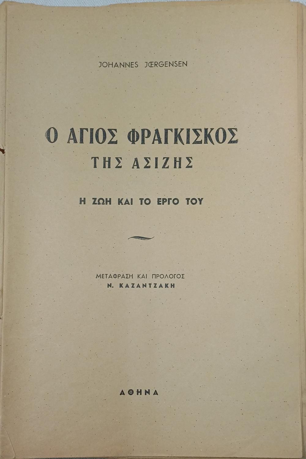 “Ο Άγιος Φραγκίσκος της Ασίζης” Johannes Jørgensen, Ν. Καζαντζάκης (1951)