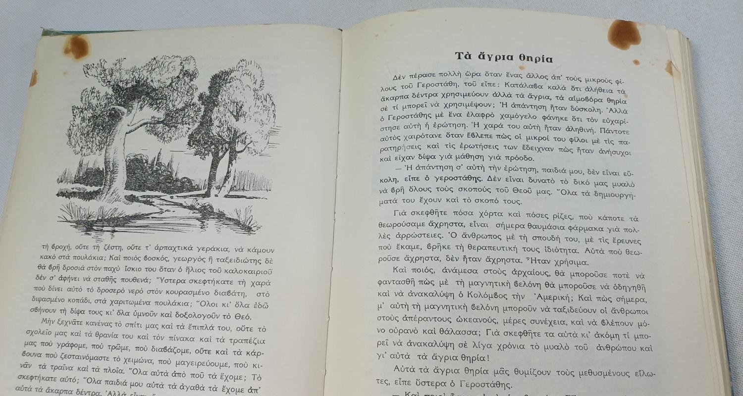 Το βιβλίο είναι μεταχειρισμένο με ορισμένες φθορές λόγω χρήσης και παλαιότητας. Φέρει φθορά στη ράχη και έχει χρησιμοποιηθεί κολλητική ταινία για την επιδιόρθωση των εισαγωγικών σελίδων.