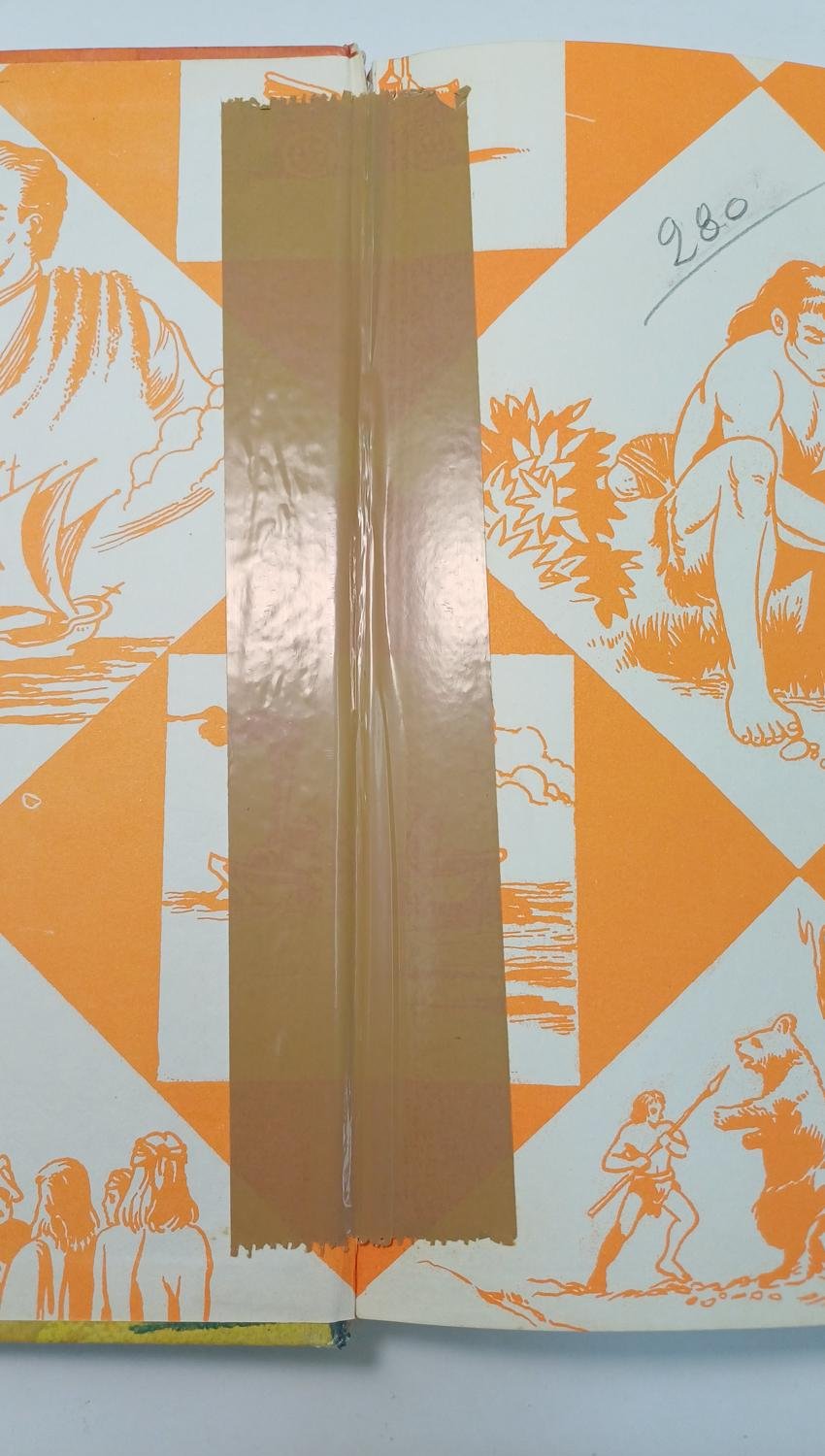 Το βιβλίο είναι μεταχειρισμένο με φθορά στη ράχη λόγω χρήσης και παλαιότητας. Η ράχη είναι επιδιορθωθεί με κολλητική ταινία στο εσωτερικό των εισαγωγικών σελίδων.