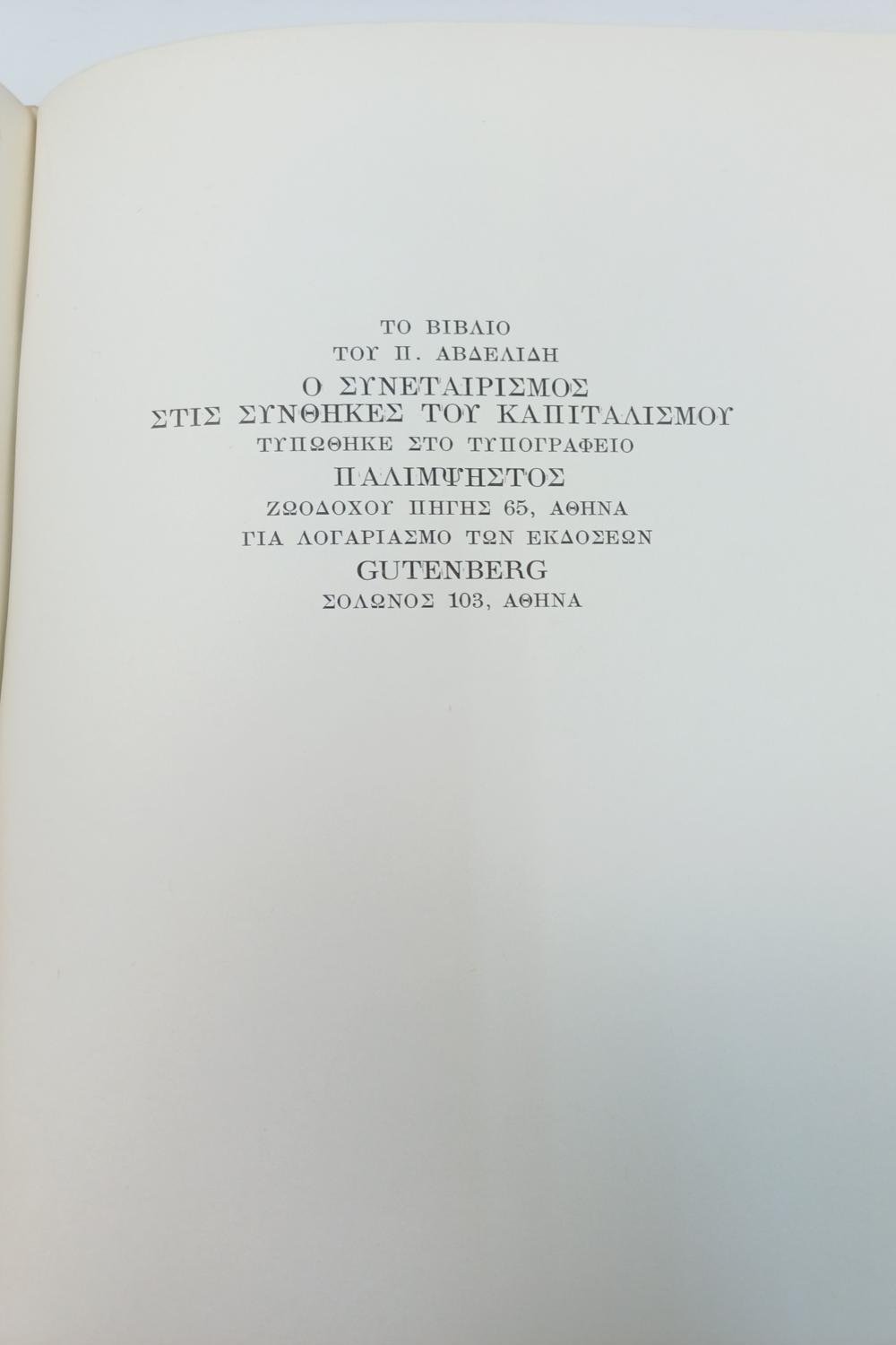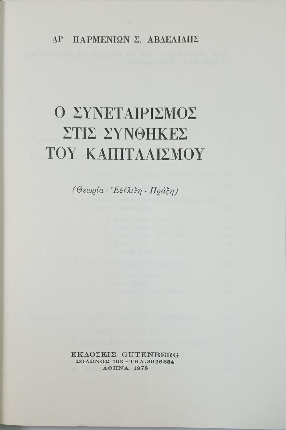 “Ο Συνεταιρισμός στις Συνθήκες του Καπιταλισμού” Δρ. Παρμενίων Αβδελίδης (1978)
