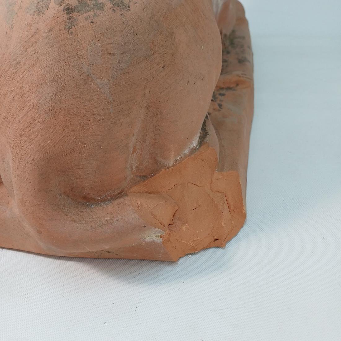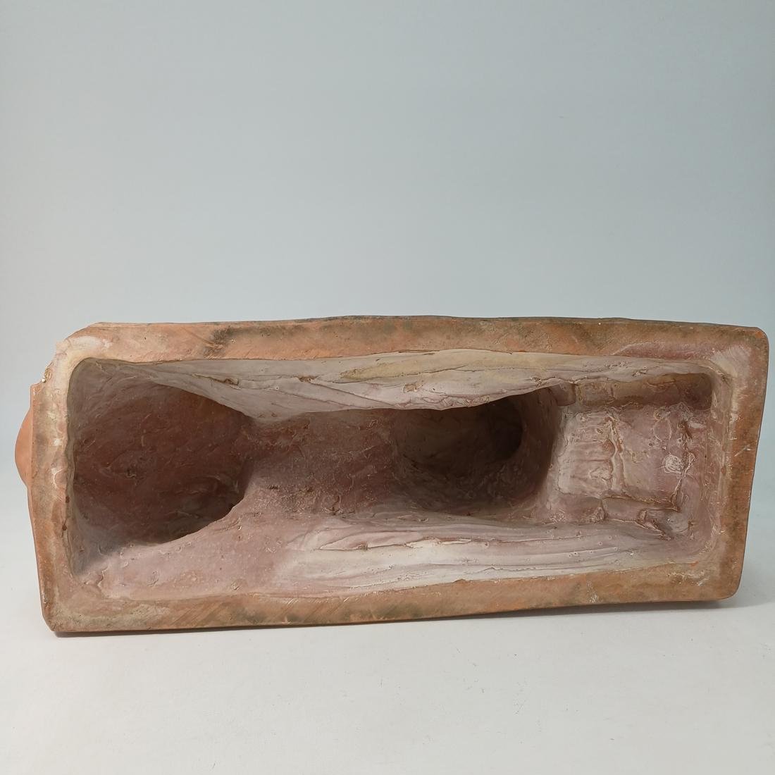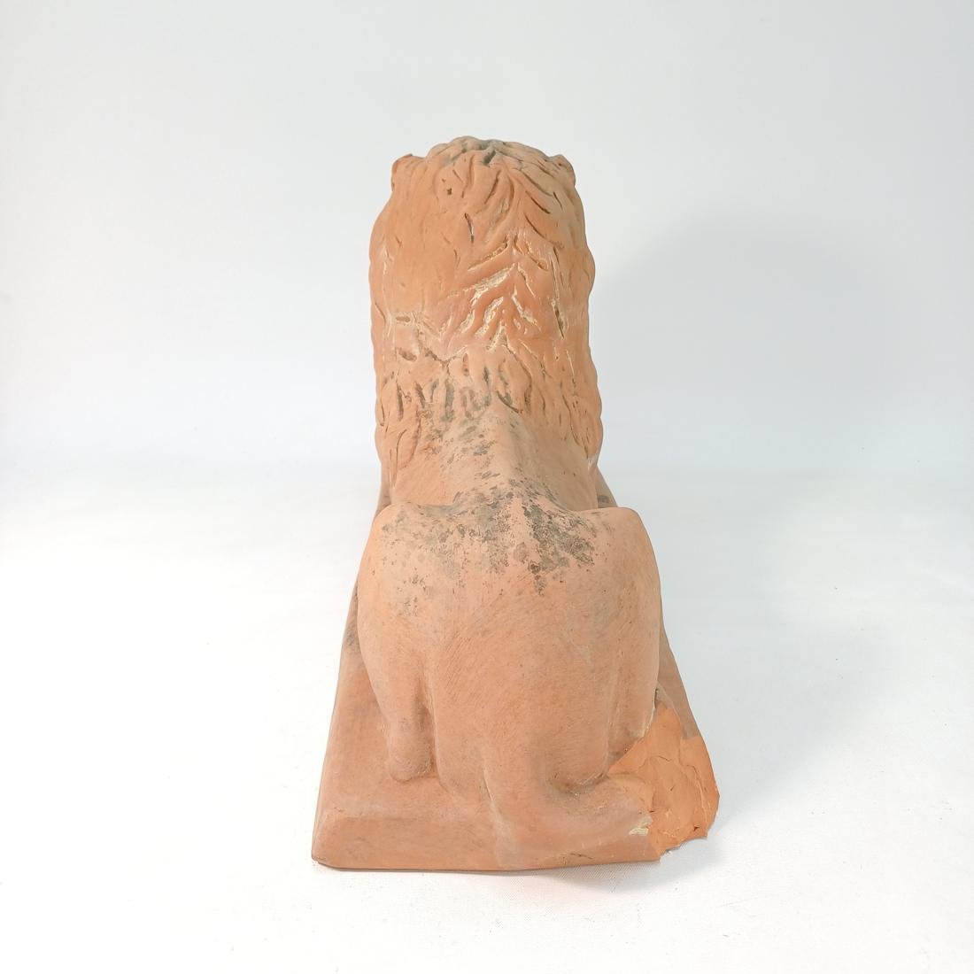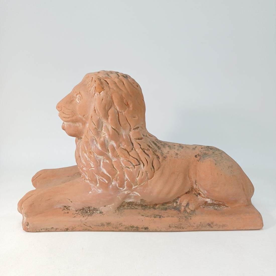 Πήλινο λιοντάρι το οποίο χρησιμοποιούνταν ως διακοσμητικό ακροκέραμο. Φέρει σημάδια έκθεσης σε εξωτερικό χώρο και οι διαστάσεις του είναι 51 * 20,5 * 33 cm.