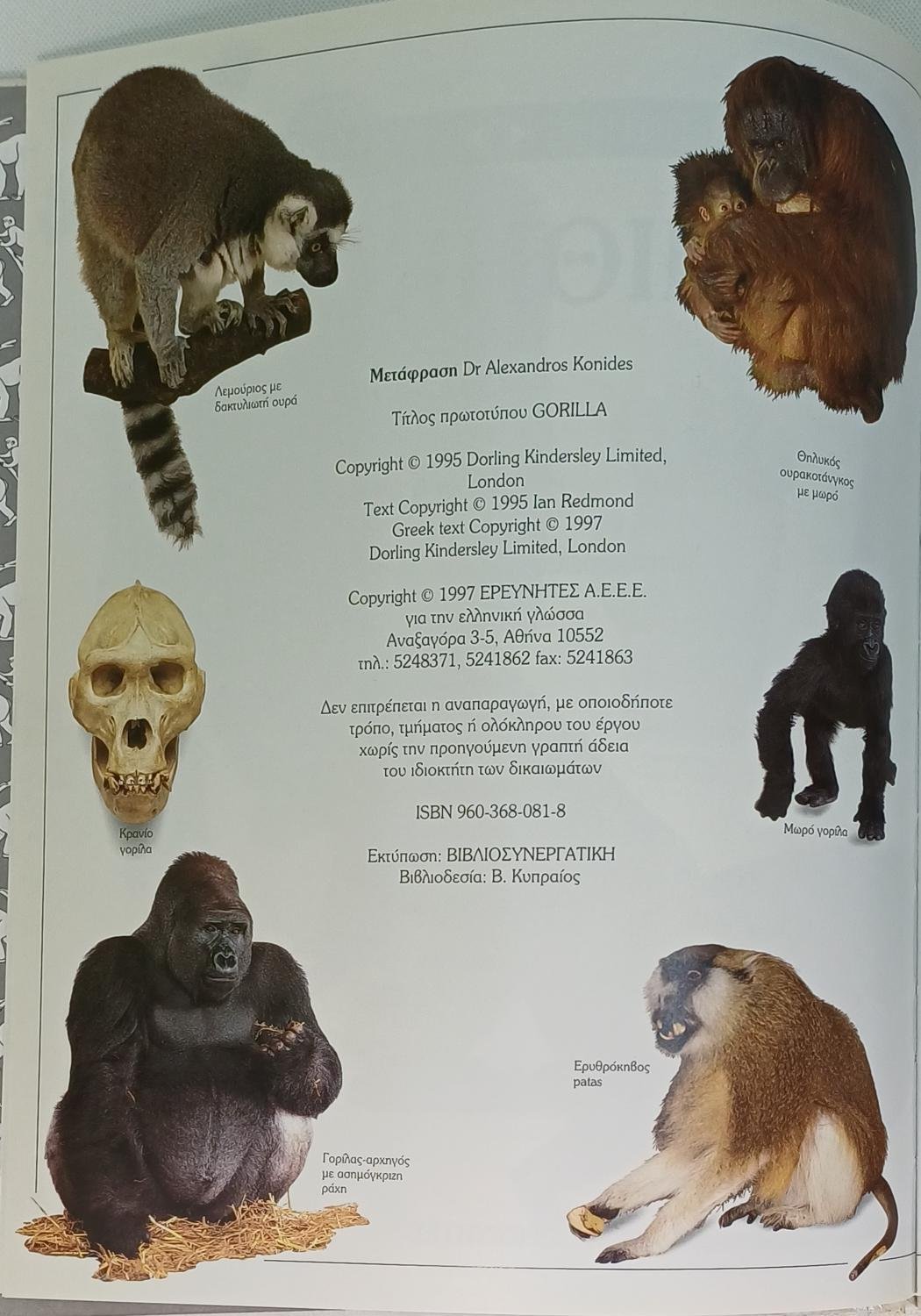 Το βιβλίο “Πίθηκοι“, μέρος της σειράς “Αυτόπτης Μάρτυρας”, είναι ένας πλήρης, εικονογραφημένος οδηγός που προσφέρει μια συναρπαστική εξερεύνηση στον κόσμο των πιθήκων, των μαϊμούδων και των υπόλοιπων πρωτευόντων θηλαστικών. Μέσα από πλούσιο φωτογραφικό υλικό και αναλυτικά κείμενα, το βιβλίο καλύπτει τη μεγάλη ποικιλία ειδών –από γορίλες και ουρακοτάγκους μέχρι λεμούριους– και εμβαθύνει στην κοινωνική τους συμπεριφορά, την οικογενειακή τους ζωή και την αξιοθαύμαστη νοημοσύνη τους, εξετάζοντας παράλληλα θέματα όπως η επικοινωνία των χιμπαντζήδων και οι κίνδυνοι εξαφάνισης που αντιμετωπίζουν ορισμένα είδη.