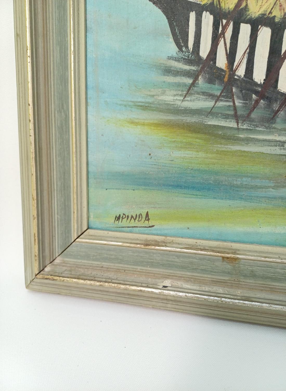Πίνακας ζωγραφικής σε κορνίζα, ο οποίος απεικονίζει ένα παραδοσιακό Αφρικανικό χωριό και ένα πλωτό καράβι με Αφρικανούς πολεμιστές. Φέρει υπογραφή με το όνομα “MPINDA”. Αυτό είναι ένα κοινό αφρικανικό επίθετο αλλά η σημασία του μπορεί ποικίλλει. Με αυτή την ονομασία χαρακτηρίζεται επίσης μια εθνοτική ομάδα, οι Μπίντα (Mpinda) η οποία βρίσκεται κυρίως στη νοτιοανατολική Ανγκόλα.