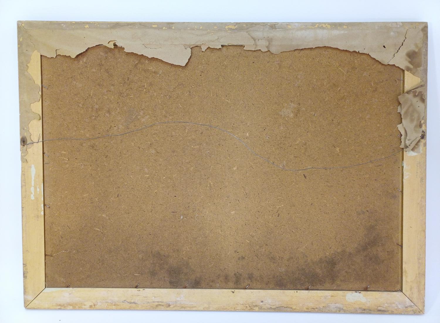 Ο πίνακας έχει ορισμένες εκδορές κυρίως στην πάνω αριστερή μεριά (όπως υποδεικνύεται στη φωτογραφία). Η κορνίζα έχει κάποια αποκόλληση στη κάτω δεξιά γωνία. Οι διαστάσεις του είναι 90 * 66 cm.
