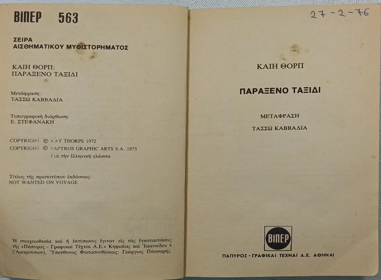 “Παράξενο Ταξίδι” Καίη Θόρη (Νο. 17 – 1975)