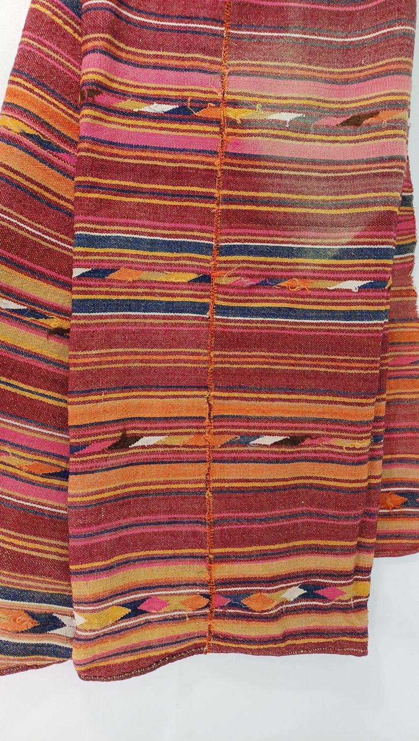 Παραδοσιακό ριχτάρι σε γήινες αποχρώσεις. Είναι μεταχειρισμένο και φέρει ενδιάμεση ραφή που ενώνει 2 κομμάτια. Οι διαστάσεις του είναι 1,70 * 2,05 m.