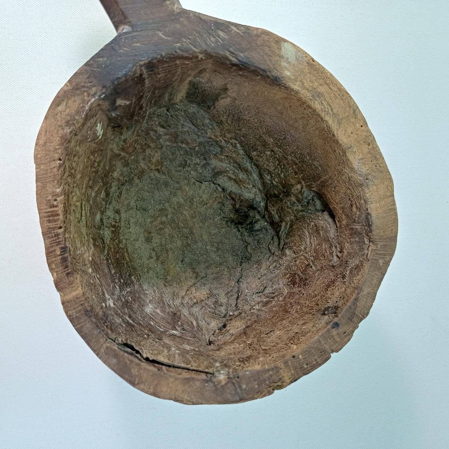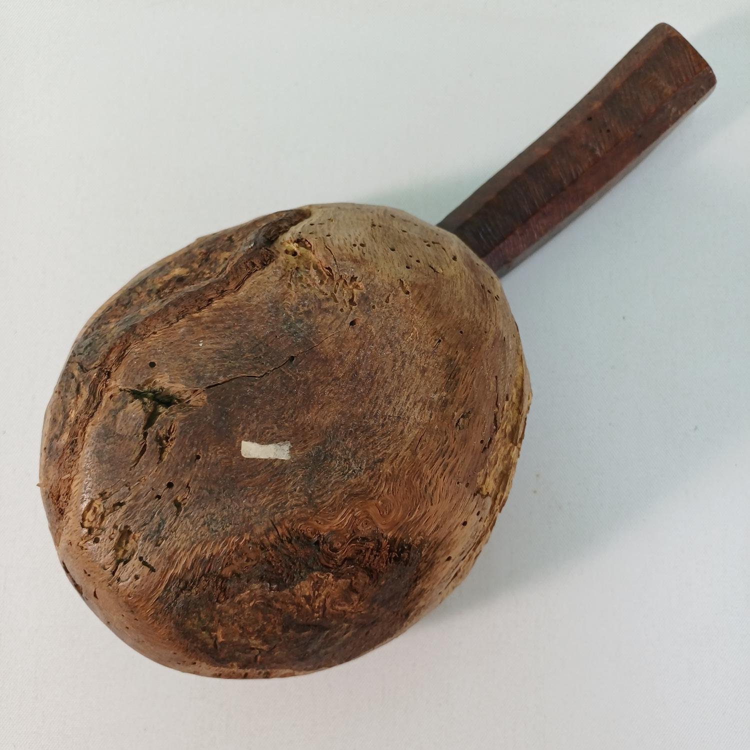 Παραδοσιακό ξύλινο γουδί με χερούλι σκαλισμένο στο χέρι, με το γουδοχέρι του. Το γουδί είναι από μασίφ ξύλο και το ανομοιόμορφο σκάλισμά του προδίδει την χειροποίητη κατασκευή του δίνοντάς του ένα ρουστίκ ύφος. Έχει διάμετρο περίπου 16,5 cm και ύψος 10 cm. Η μέτρηση του μήκους μαζί με το χερούλι είναι 29,5 cm. Συνοδεύεται από το γουδοχέρι του, το οποίο έχει μήκος 23,7cm και μέγιστη διάμετρο 5,8 cm.