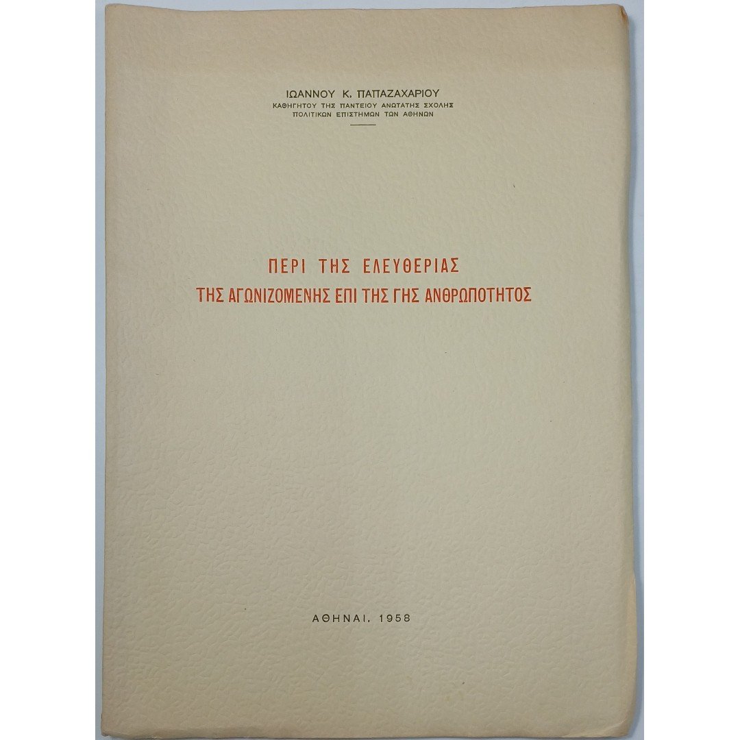 “Περί της Ελευθερίας της Αγωνιζομένης επί της Γης Ανθρωπότητος” Ιωάννης Κ. Παπαζαχαρίου (1958)