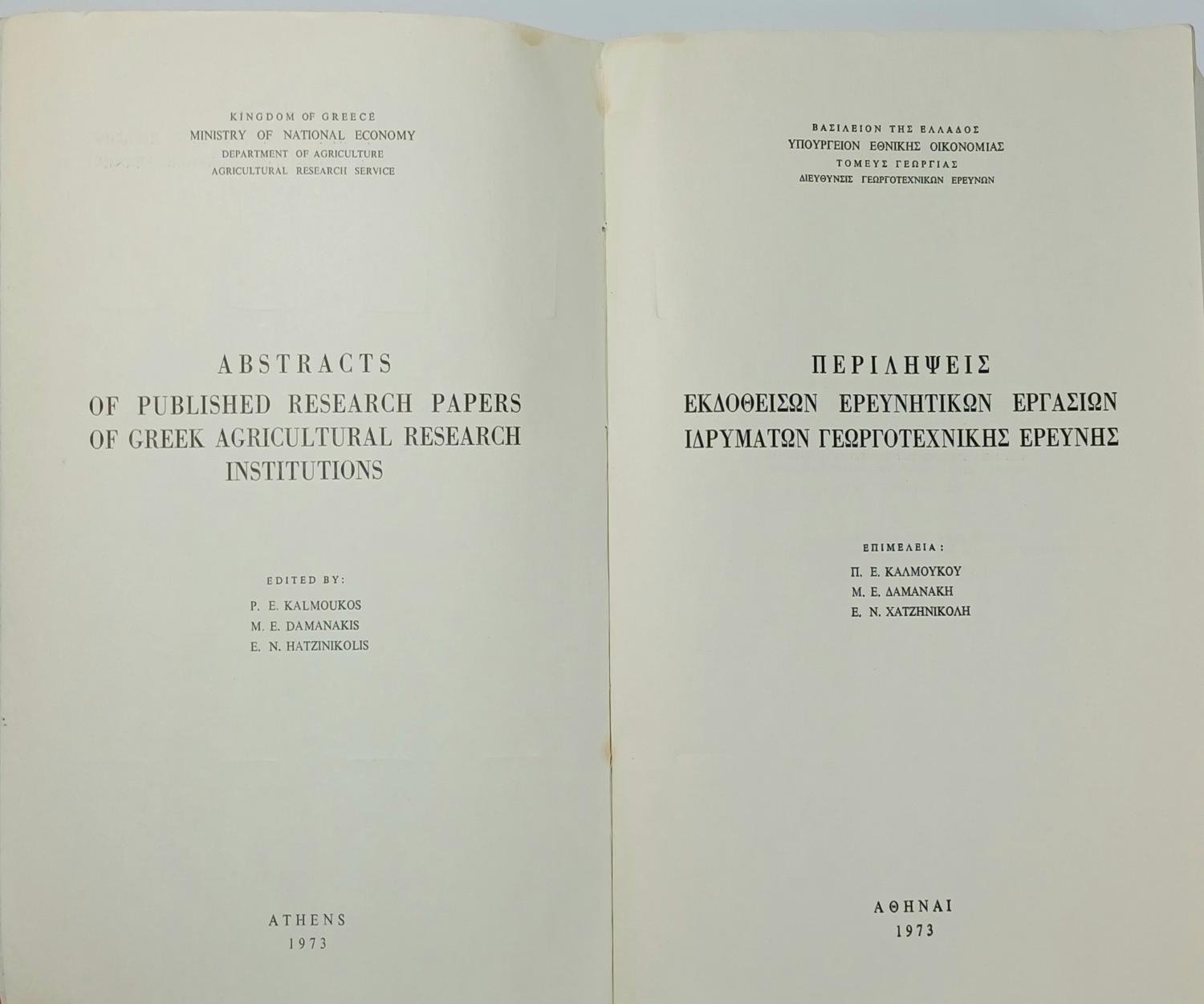 “Περιλήψεις εκδοθεισών ερευνητικών εργασιών ιδρυμάτων γεωργοτεχνικής έρευνας” (1973)
