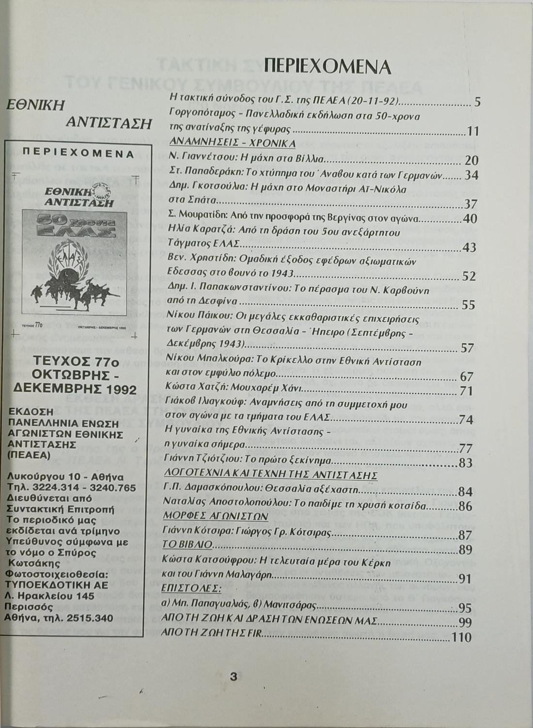 Περιοδικό “Εθνική Αντίσταση” Τεύχ. 77 – Οκτ.-Δεκ. 1992