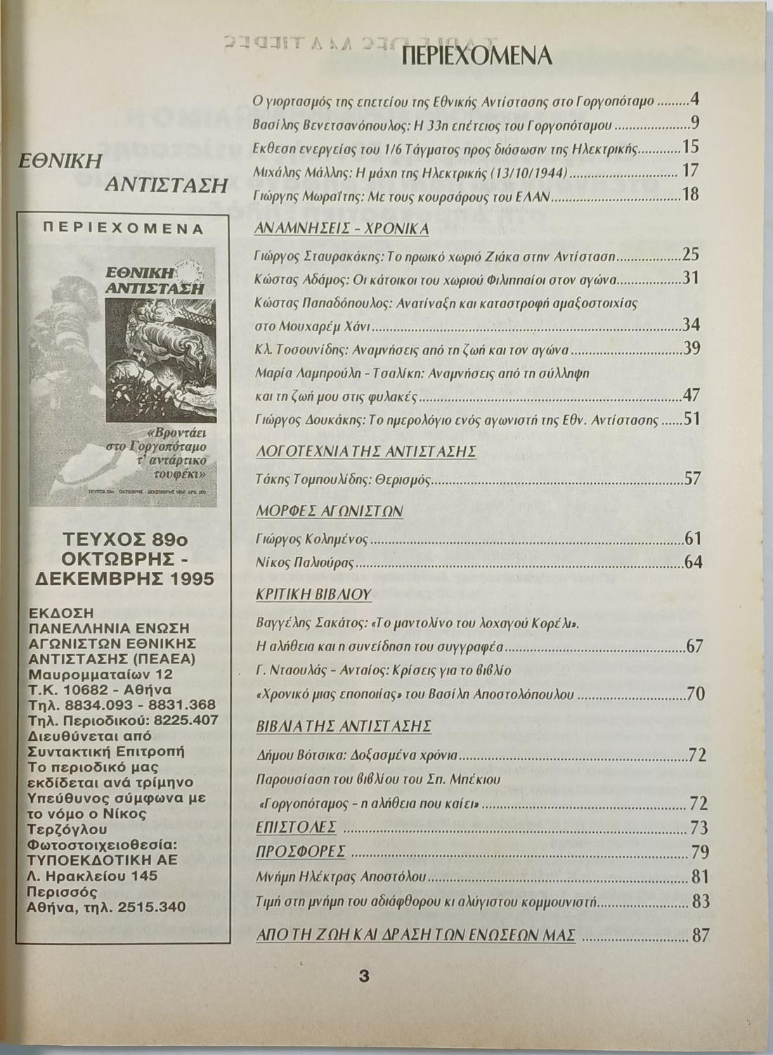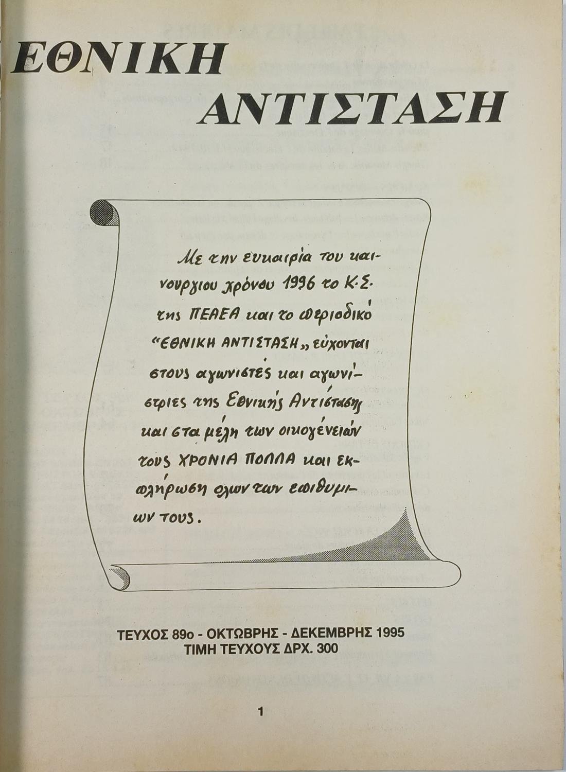 Περιοδικό “Εθνική Αντίσταση” Τεύχ. 89ο – Οκτ.-Δεκ. 1995