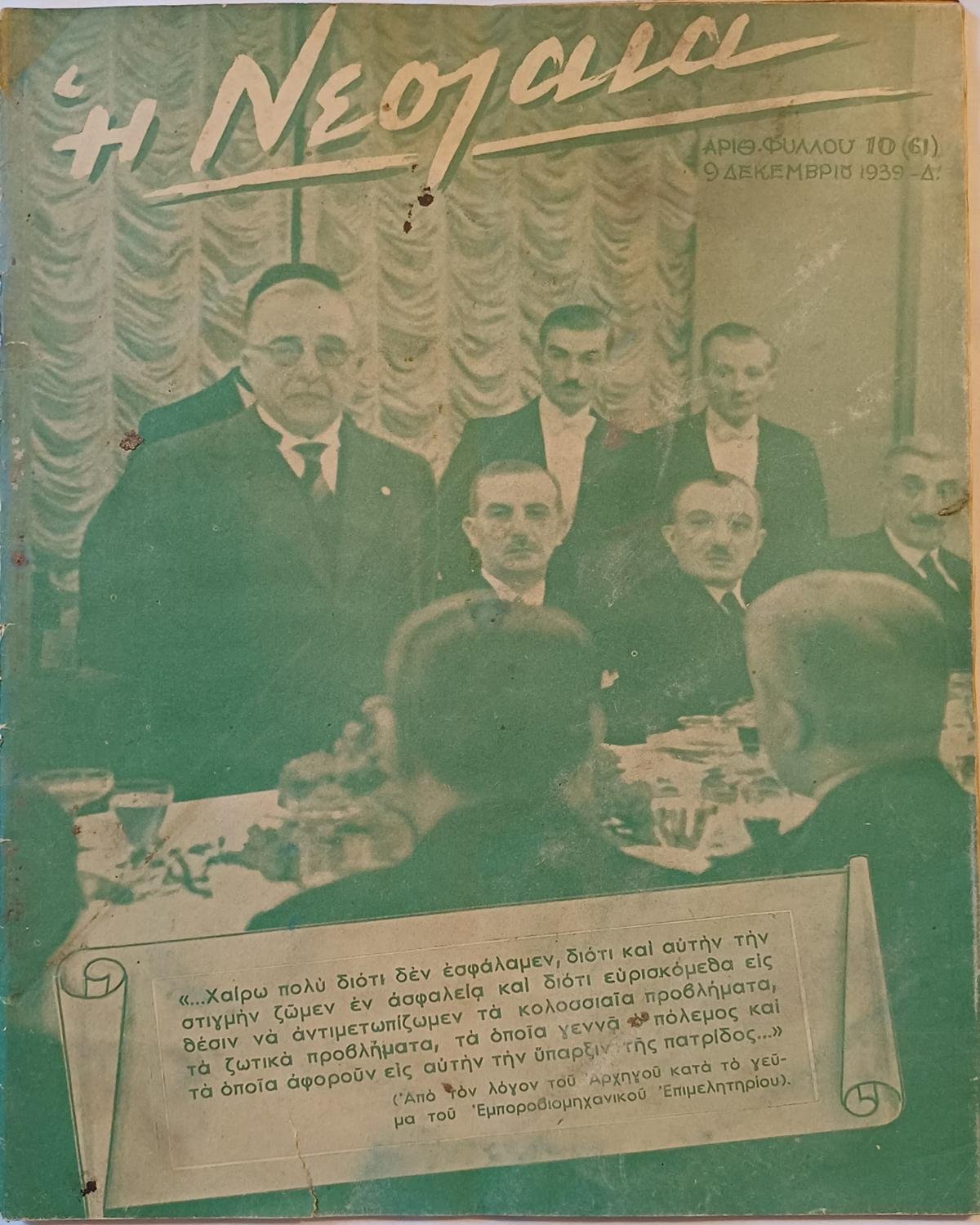 Εβδομαδιαίο περιοδικό ‘Η Νεολαία’ (9-12-1939)
