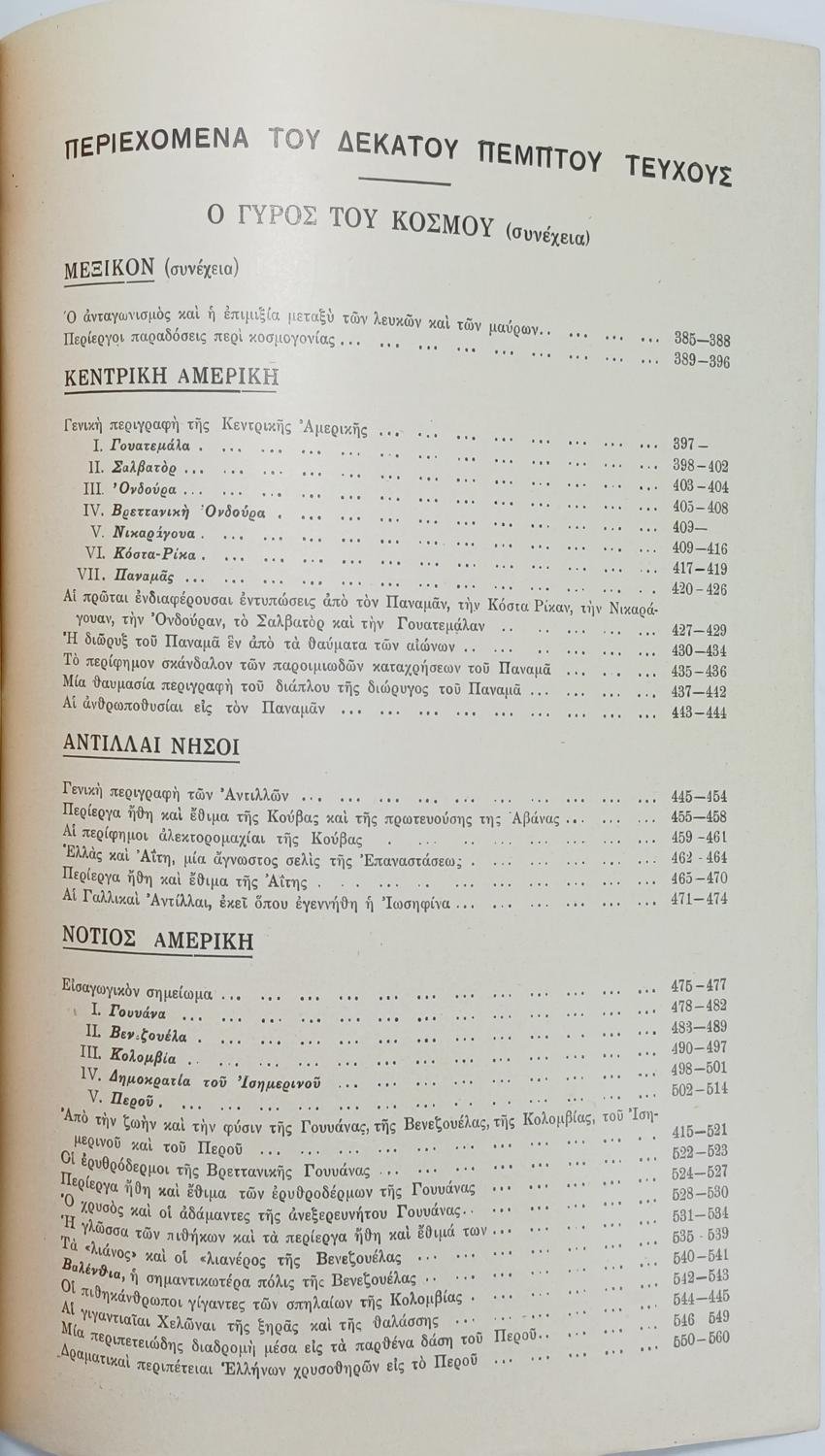 Το σπάνιο τεύχος 15 του περιοδικού “Ο Γύρος του Κόσμου” (Μηνιαία “Ακρόπολις”, Ιούλιος 1935) περιλαμβάνει ταξιδιωτικά και γεωγραφικά θέματα με επίκεντρο την αμερικανική ήπειρο, συνεχίζοντας τη θεματολογία του Μεξικού και καλύπτοντας την Κεντρική Αμερική, τις νήσους Αντίλλες, και τη Νότια Αμερική.