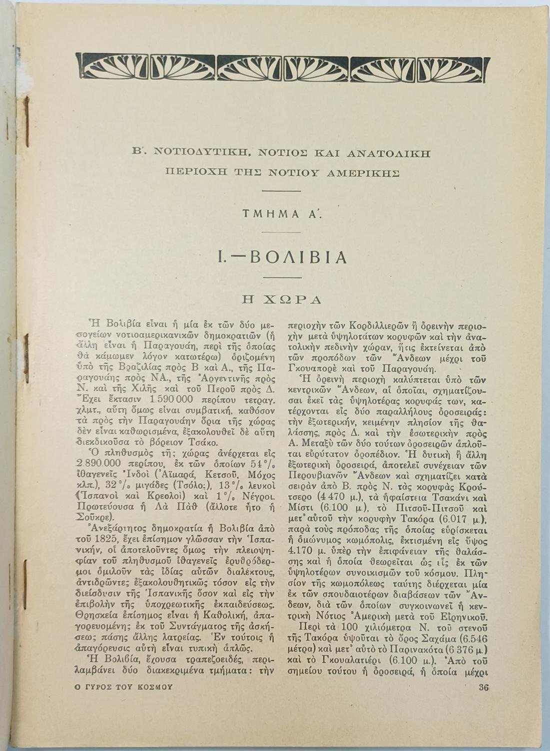 Το σπάνιο τεύχος 16 της σειράς “Ο Γύρος του Κόσμου” της Μηνιαίας “Ακρόπολις”, που εκδόθηκε τον Αύγουστο του 1935, αποτελούσε μέρος μιας εκτενούς γεωγραφικής και εθνογραφικής περιγραφής του πλανήτη.