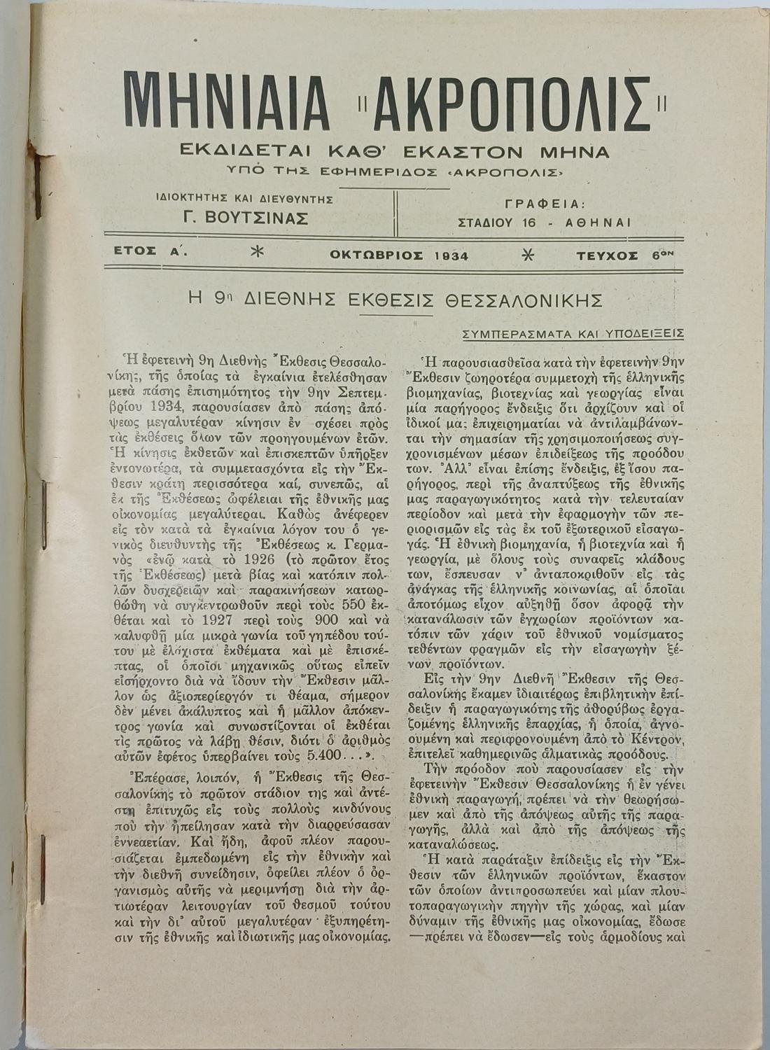 Εκδόσεις: Μηνιαία “Ακροπόλεως”