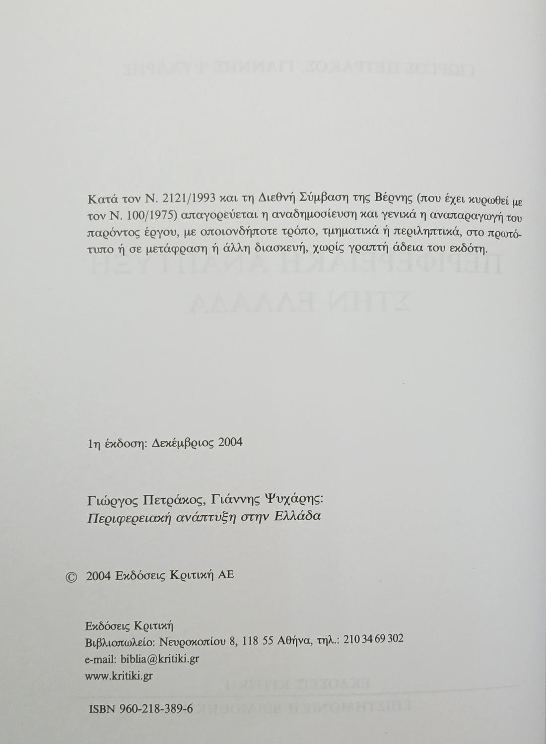 “Περιφερειακή Ανάπτυξη στην Ελλάδα” Γιώργος Πετράκος, Γιάννης Ψυχάρης (2004)