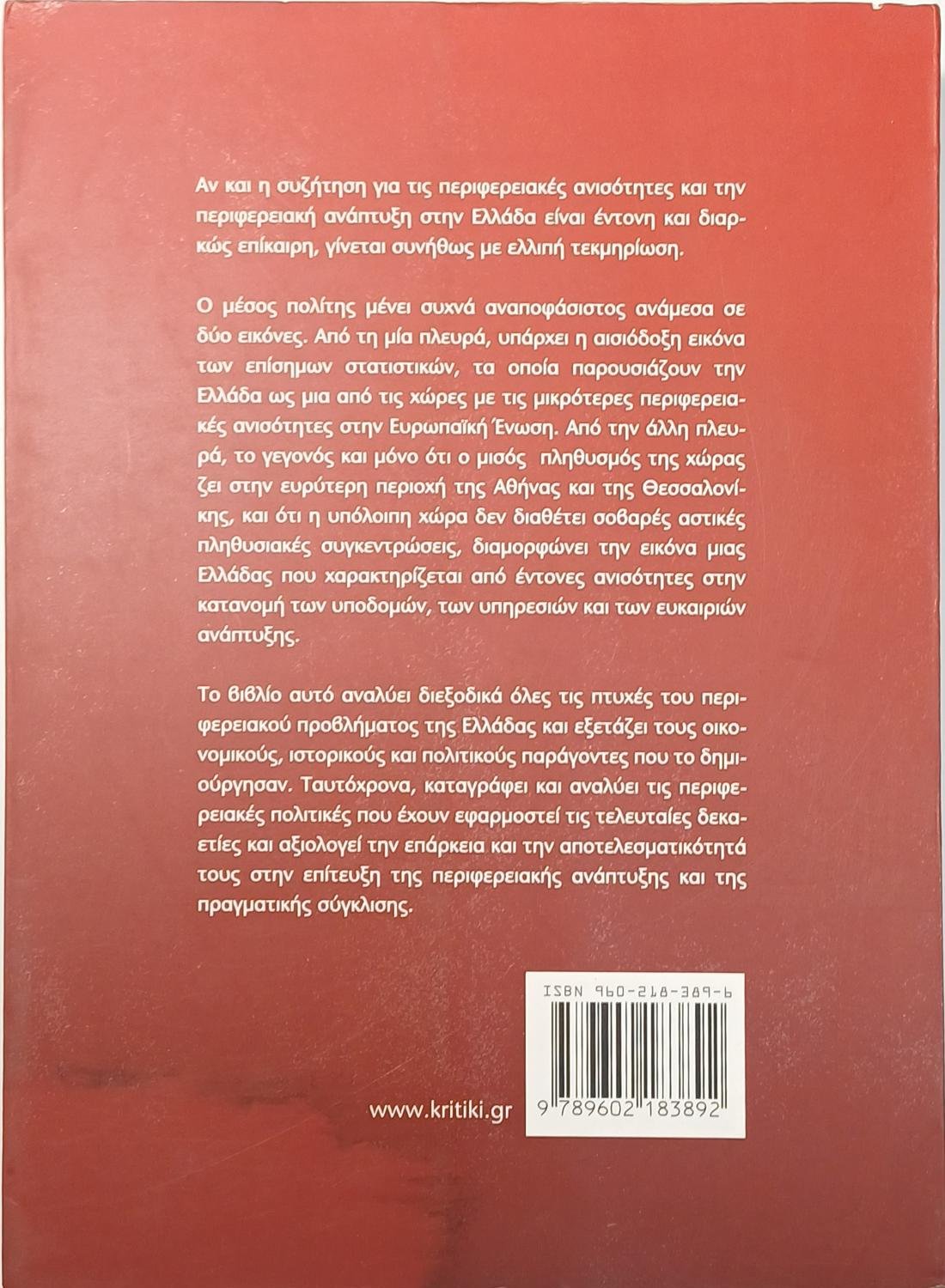 Το βιβλίο “Περιφερειακή Ανάπτυξη στην Ελλάδα”, γραμμένο από τους Γιώργο Πετράκο και Γιάννη Ψυχάρη, αποτελεί μια ολοκληρωμένη και τεκμηριωμένη ανάλυση του περιφερειακού προβλήματος και των οικονομικών ασυμμετριών μεταξύ των περιφερειών της Ελλάδας.