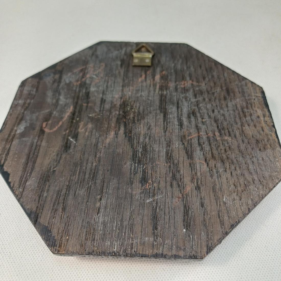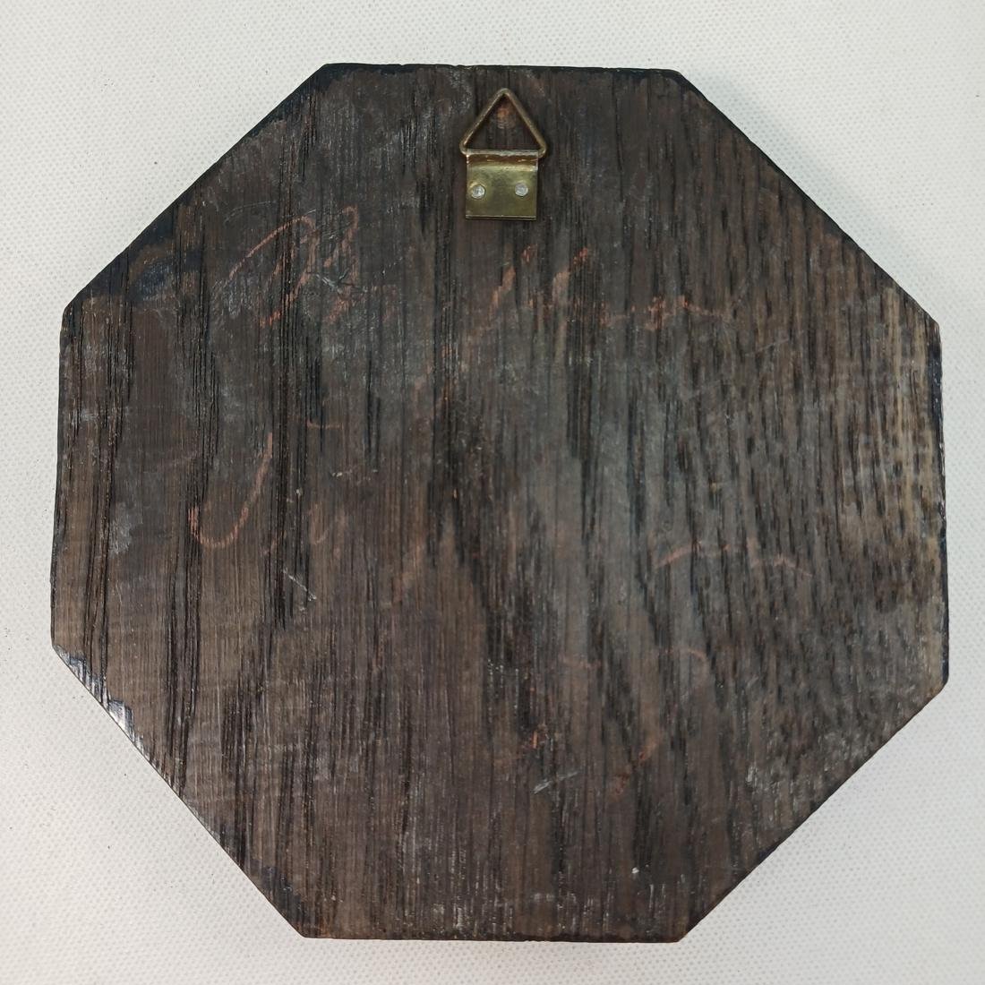 Η πλακέτα αποτελείται από μια ξύλινη βάση με ορειχάλκινη ανάγλυφη πλάκα και οι διαστάσεις της είναι 13,5 x 13,5 cm.