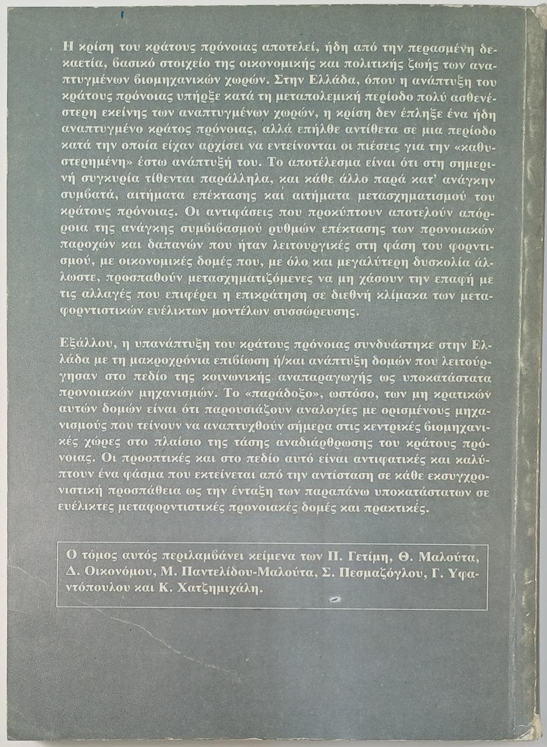 “Προβλήματα ανάπτυξης του κράτους πρόνοιας στην Ελλάδα” Θωμάς Μαλούτας, Δημήτρης Οικονόμου (1988)