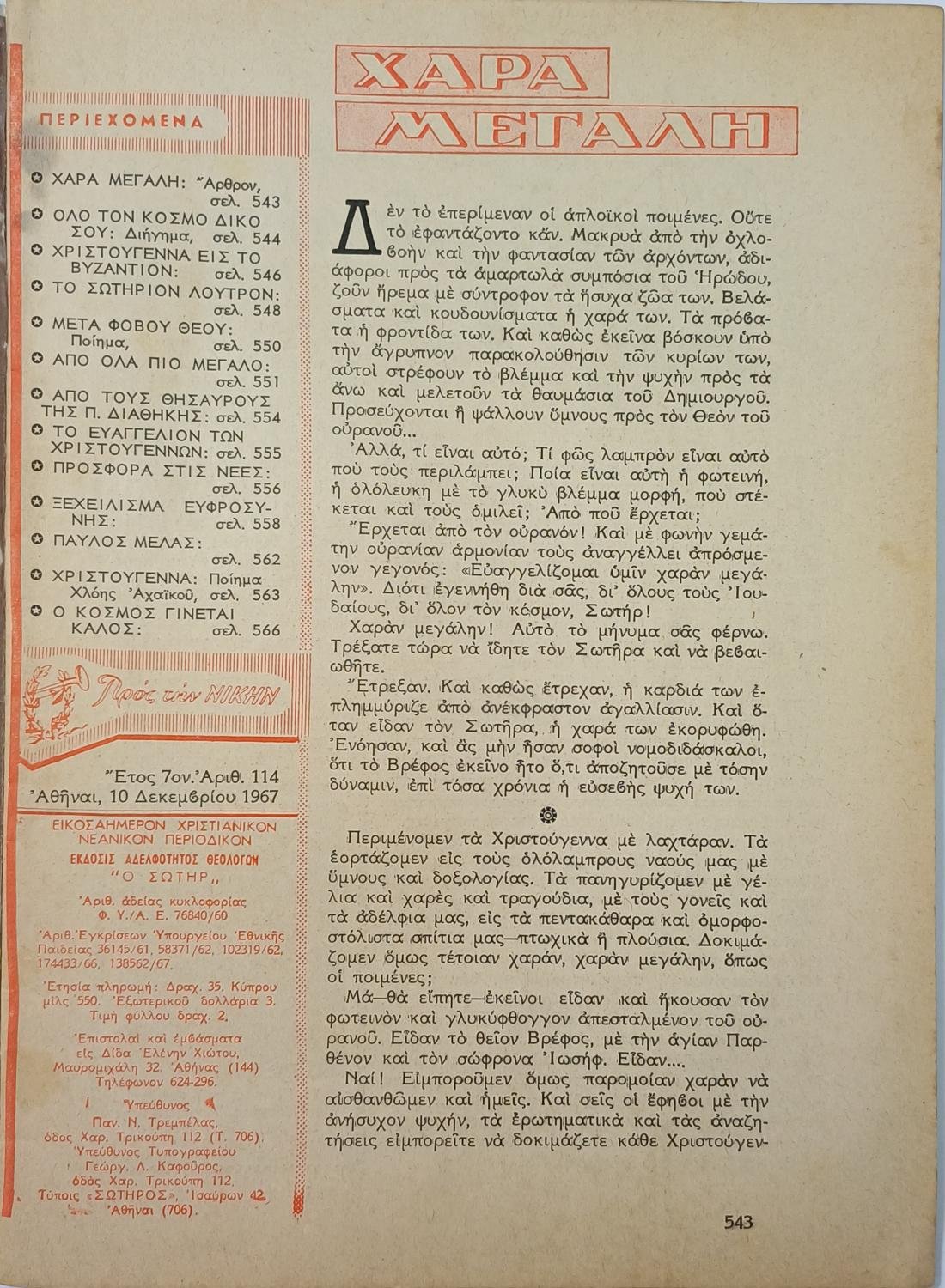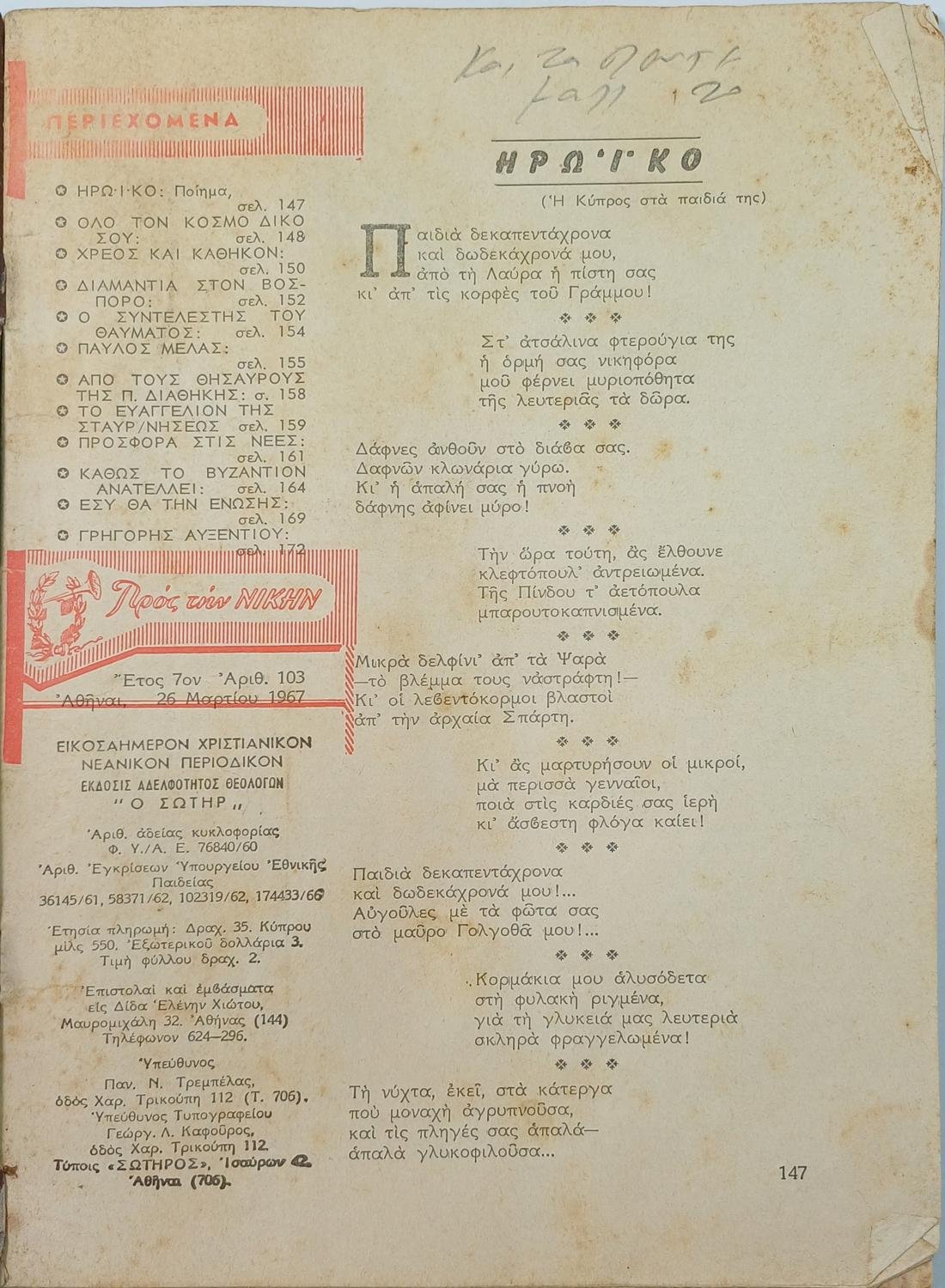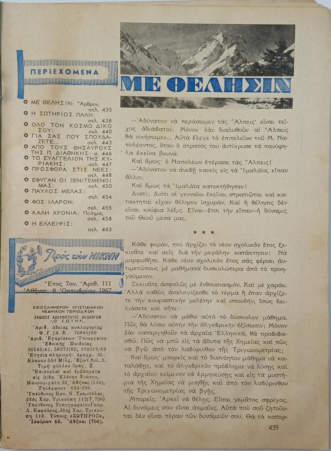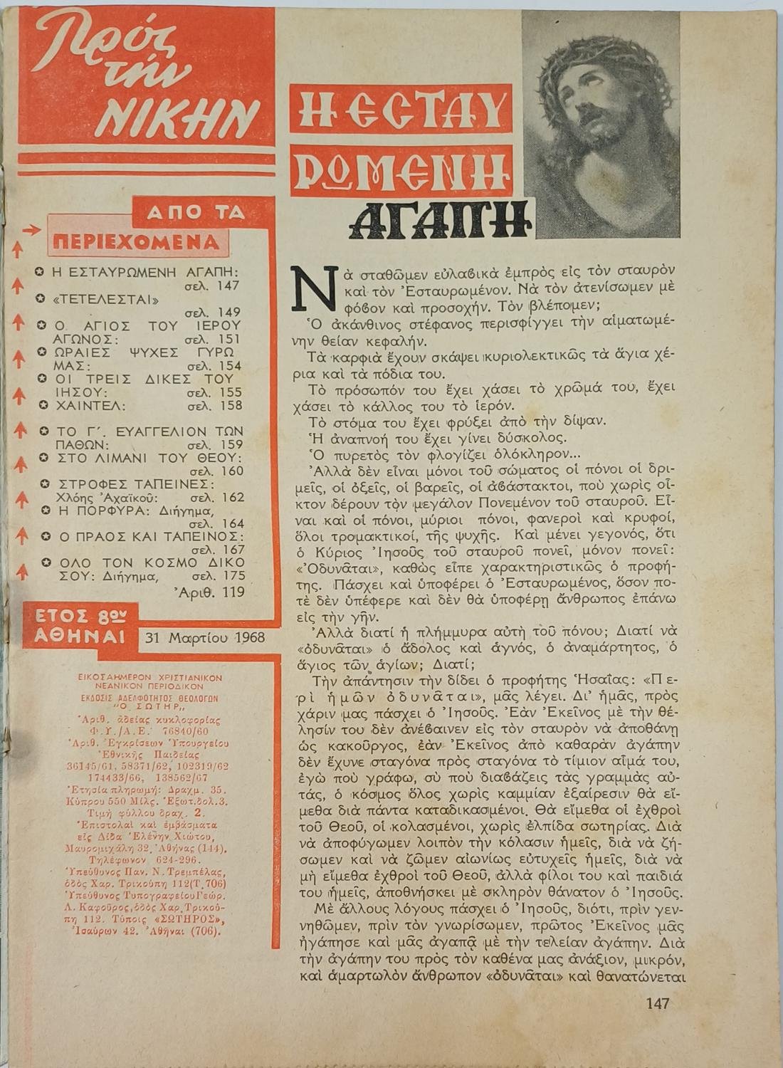 “Προς την Νίκην” Χριστιανικόν Νεανικόν Περιοδικόν (5 τεύχη, Νο: 103, 111, 114, 119, 120) 1967-1968