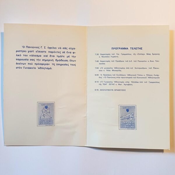 Πρόγραμμα και πρόσκληση για την εορταστική εκδήλωση του Ελληνοτσεχοσλοβακικού Συνδέσμου που πραγματοποιήθηκε την Κυριακή 9 Ιουνίου 1957, στις 11 π.μ., στο θέατρο ΙΝΤΕΑΛ