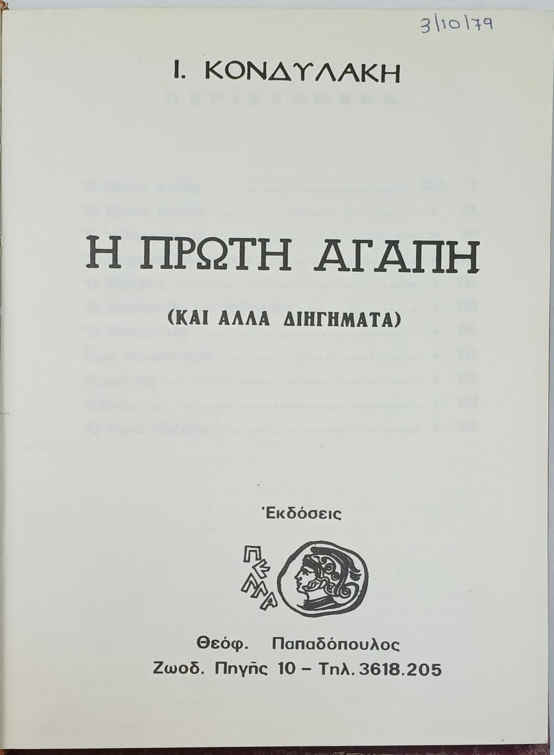 “Πρώτη αγάπη” Ι. Κονδυλάκης