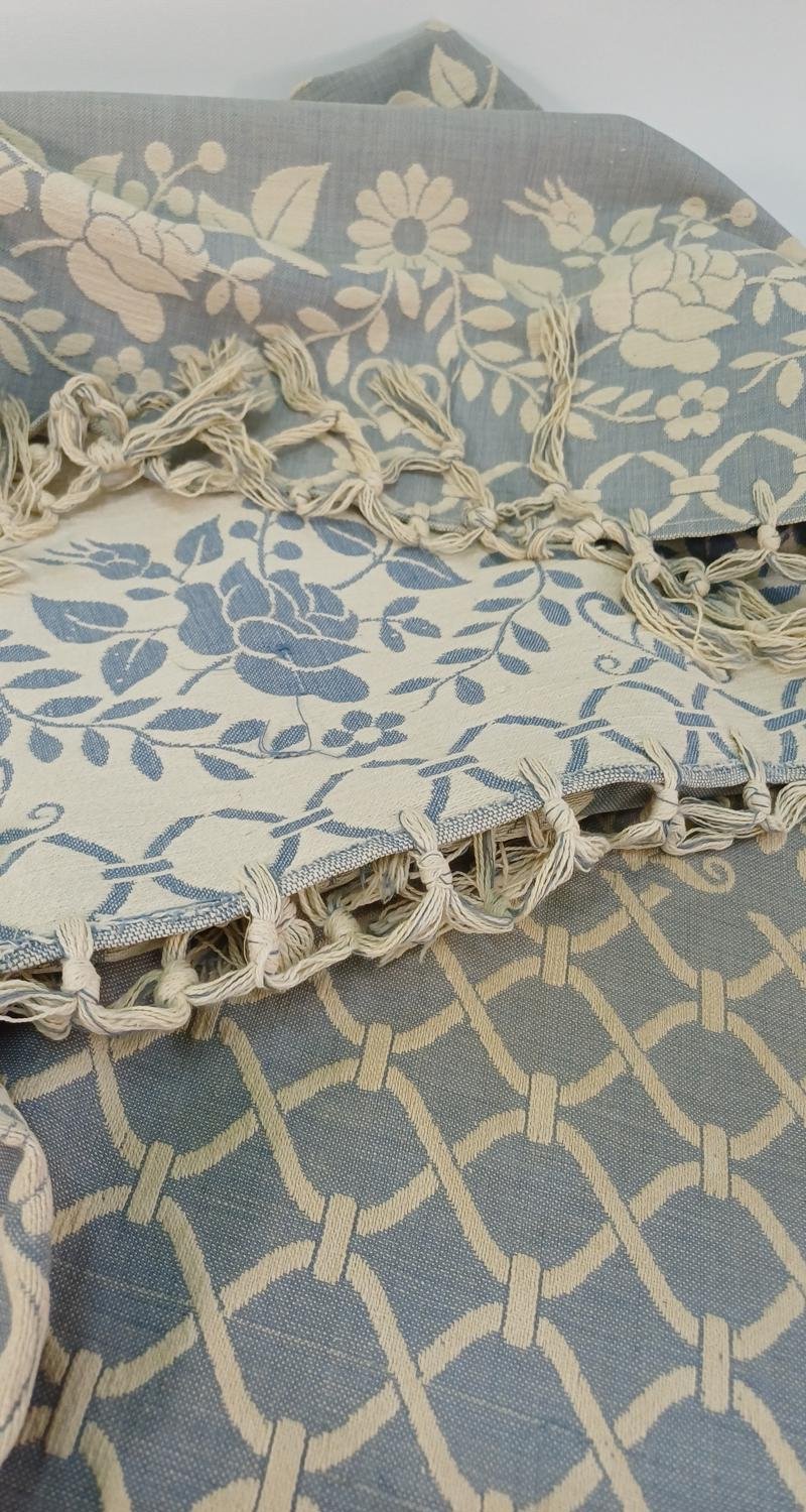 Ριχτάρι με κεντρικό περίτεχνο μοτίβο και περιμετρικά μοτίβα λουλουδιών και γεωμετρικών σχημάτων. Είναι σε γκρι-μπλε και μπεζ χρώματα και έχει κρόσσια στις ίδιες αποχρώσεις. Είναι μεταχειρισμένο και τα χρώματα έχουν ξεθωριάσει σε κάποια σημεία. Οι διαστάσεις του είναι 1,80 * 2,15 m.