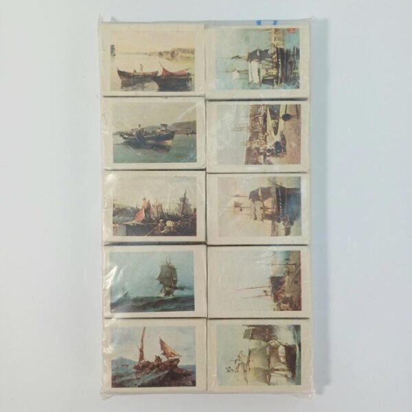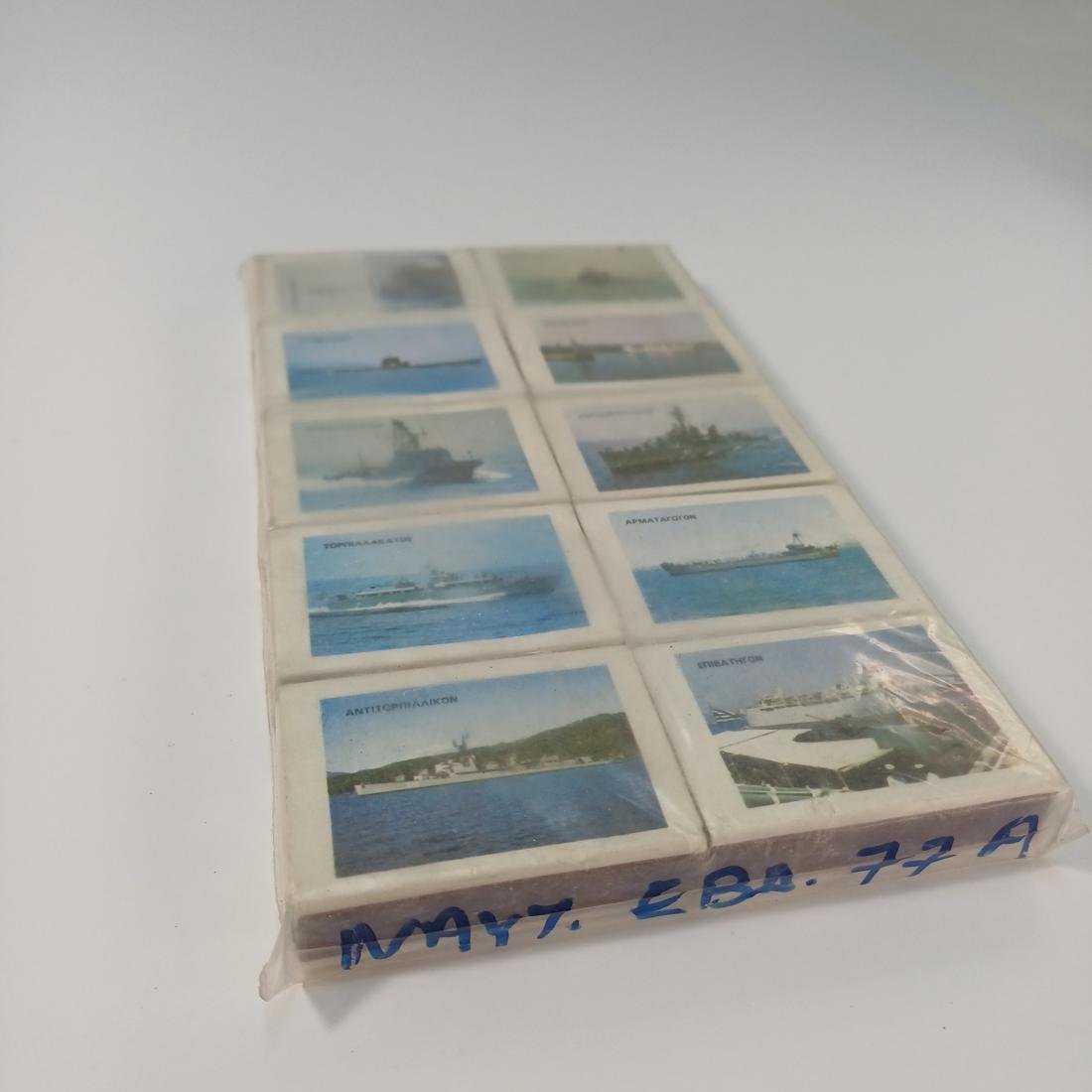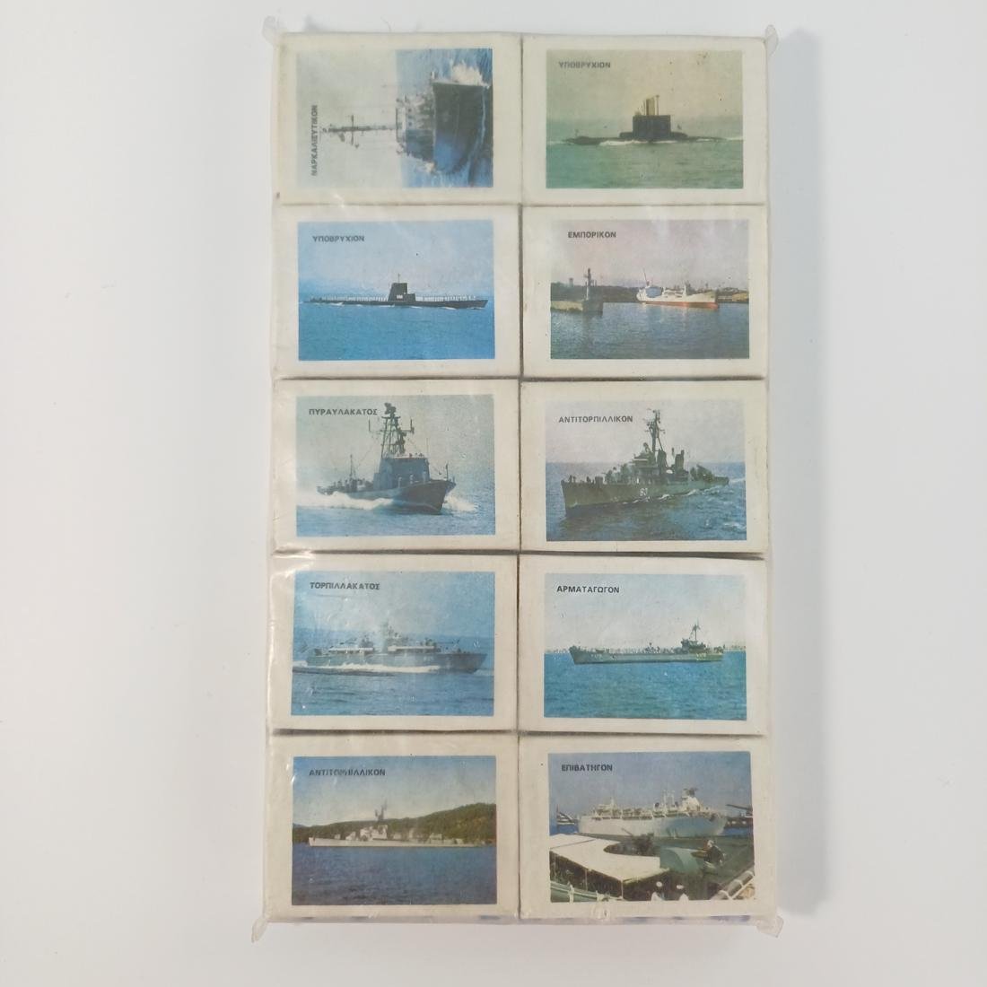 LOT 10 γεμάτων, σφραγισμένων κουτιών από σπίρτα με αφιέρωμα στη “Ναυτική Εβδομάδα 1977”. Τα κουτιά απεικονίζουν διάφορα είδη πλοίων από τον Ελληνικό Ναυτικό Στόλο έως το έτος 1977. Κάθε κουτί αναγράφει το είδος του πλοίου που απεικονίζει, όπως η πυραυλάκατος, το υποβρύχιο, το αντιτορπιλικό και άλλα.