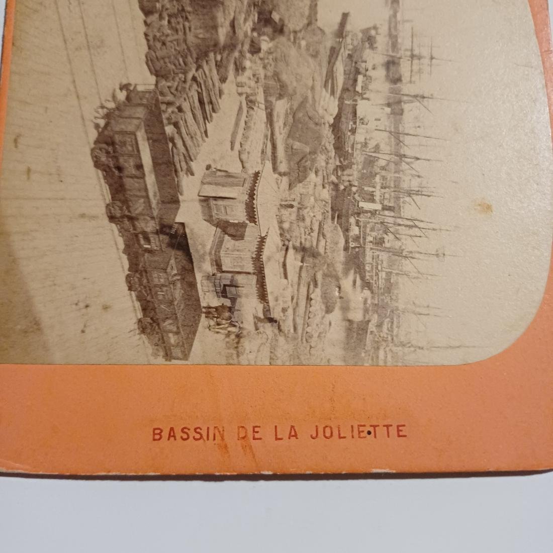 Η στερεοσκοπική φωτογραφία απεικονίζει το λιμάνι της Μασσαλίας (Bassin de la Joliette) από την συλλογή “Marseille”. Εκδόθηκε από τον Étienne Neurdein (1832–1918) (“Publié par E. Neurdein, Paris”), έναν από τους σημαντικότερους Γάλλους φωτογράφους και εκδότες καρτ ποστάλ της εποχής του. Μαζί με τον αδελφό του, Louis-Antonin, ίδρυσαν στο Παρίσι την εταιρεία Neurdein Frères (Αδελφοί Neurdein), η οποία κυριάρχησε στη γαλλική αγορά φωτογραφικών αναμνηστικών στα τέλη του 19ου και στις αρχές του 20ού αιώνα.