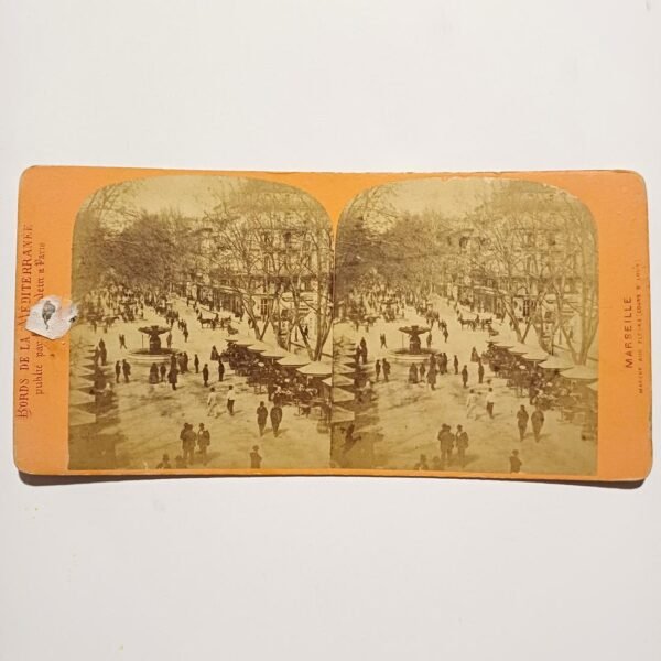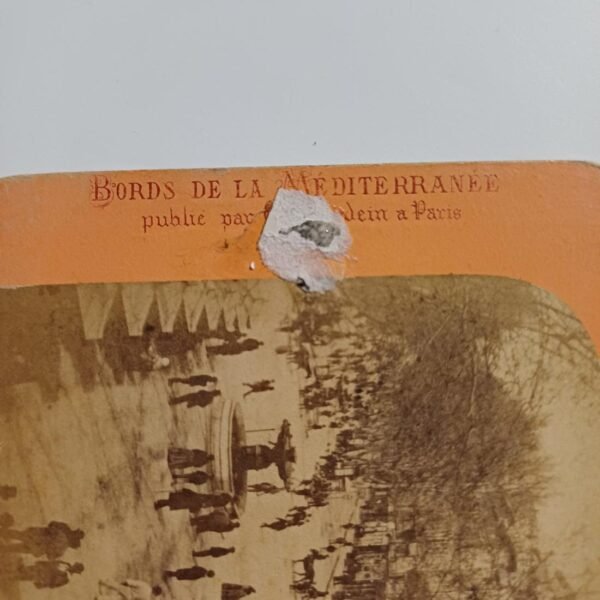 Η σπάνια στερεοσκοπική φωτογραφία απεικονίζει το Palais Garnier (Όπερα Γκαρνιέ) στο Παρίσι και το οποίο αποτελεί ένα αριστούργημα της αρχιτεκτονικής του 19ου αιώνα με πολυτελή διακόσμηση. Οι διαστάσεις της φωτογραφίας είναι 18 x 9 cm και χρονολογείται στα τέλη του 19ου – αρχές 20ού αιώνα.