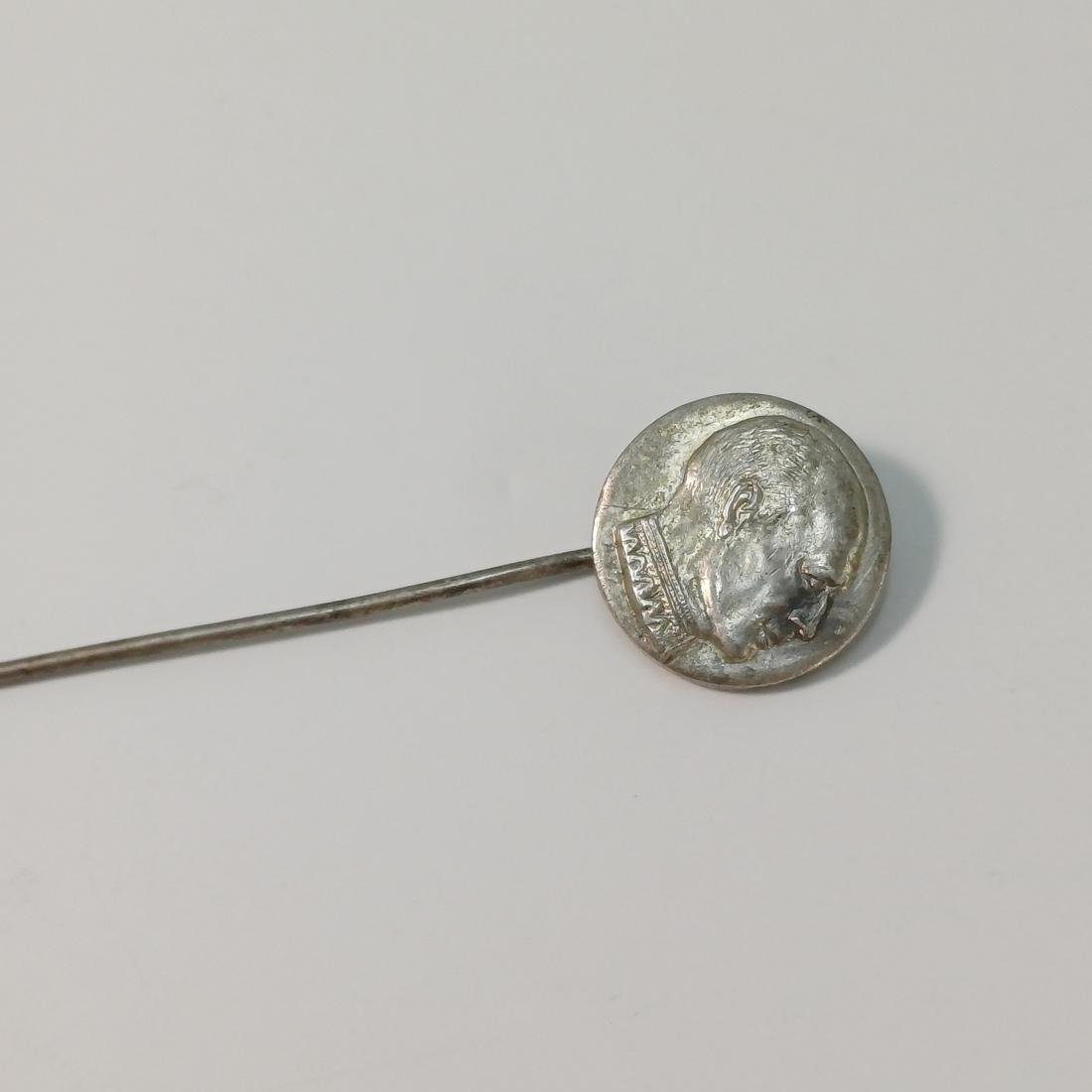 Συλλεκτική καρφίτσα πέτου που απεικονίζει τον Βασιλεύ Γεώργιο Β’. Στην πίσω όψη αναγράφονται οι λέξεις “ΠΙΣΤΙΣ, ΑΓΩΝ, ΝΙΚΗ”
