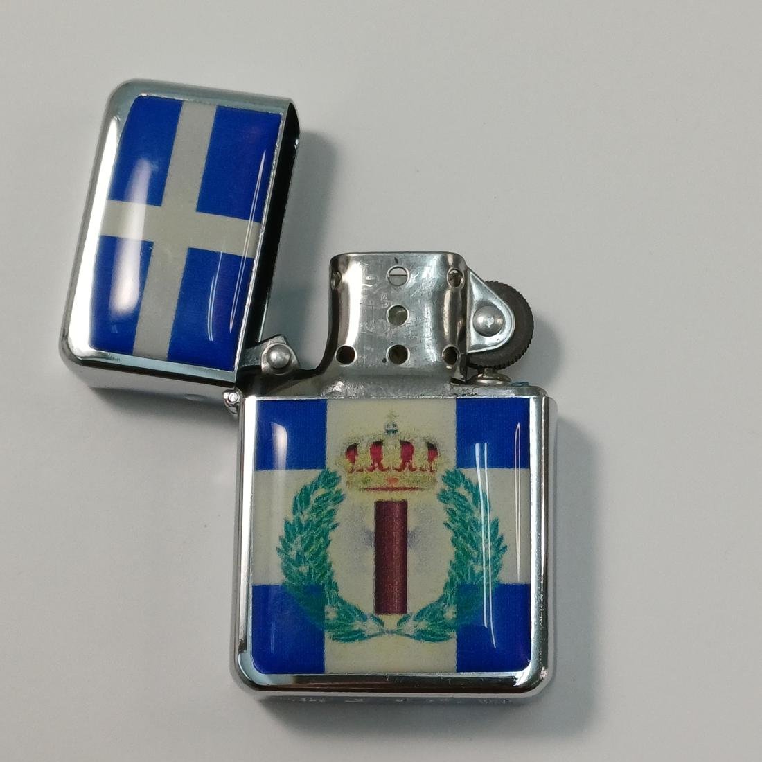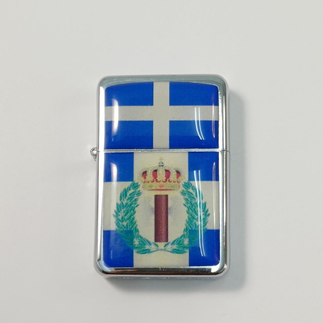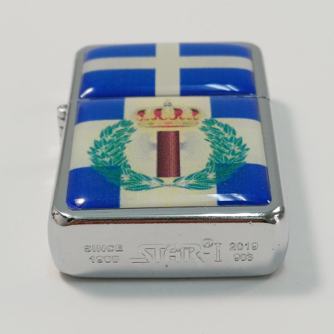 Συλλεκτικός αναπτήρας “STAR I- since 1988” με θέμα το έμβλημα της “Εθνικής Οργάνωσης Νεολαίας” η οποία ιδρύθηκε από τον Ιωάννη Μεταξά το 1936 με φόντο την Ελληνική σημαία