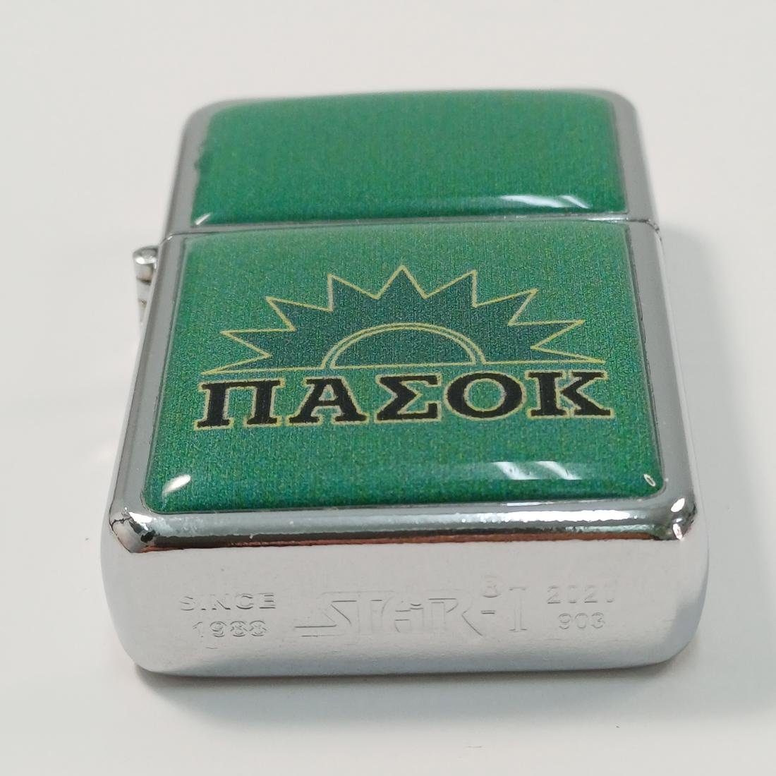 Συλλεκτικός αναπτήρας “STAR I- since 1988” με θέμα το λογότυπο του ΠΑΣΟΚ. Στο κάτω μέρος φέρει χάραξη με τους αριθμούς “2020/903”.