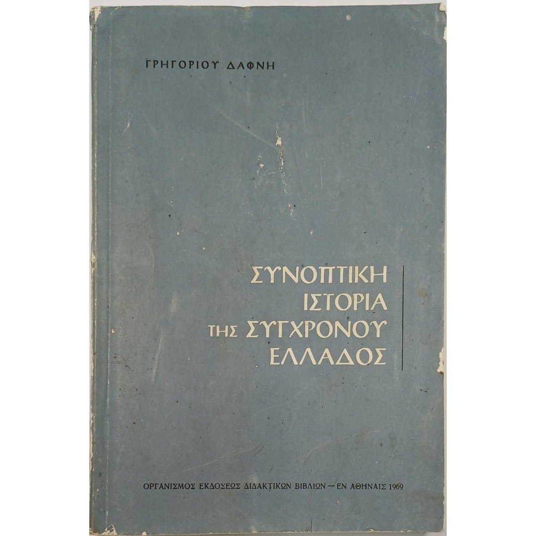 Το βιβλίο «Συνοπτική Ιστορία της Συγχρόνου Ελλάδος» του Γρηγορίου Δαφνή, αποτελεί ένα σχολικό εγχειρίδιο ιστορίας που χρησιμοποιήθηκε ευρέως στη Δευτεροβάθμια Εκπαίδευση. Το περιεχόμενό του καλύπτει την κρίσιμη περίοδο της σύγχρονης ελληνικής ιστορίας από το 1914 έως το 1968, περιγράφοντας το ρόλο της Ελλάδας στον Α’ και Β’ Παγκόσμιο Πόλεμο, την κατάσταση της χώρας κατά τον Μεσοπόλεμο, τις πολιτικές εξελίξεις κατά τον Ψυχρό Πόλεμο, το Κυπριακό ζήτημα και φτάνοντας μέχρι την περίοδο ανόδου της Χούντας.