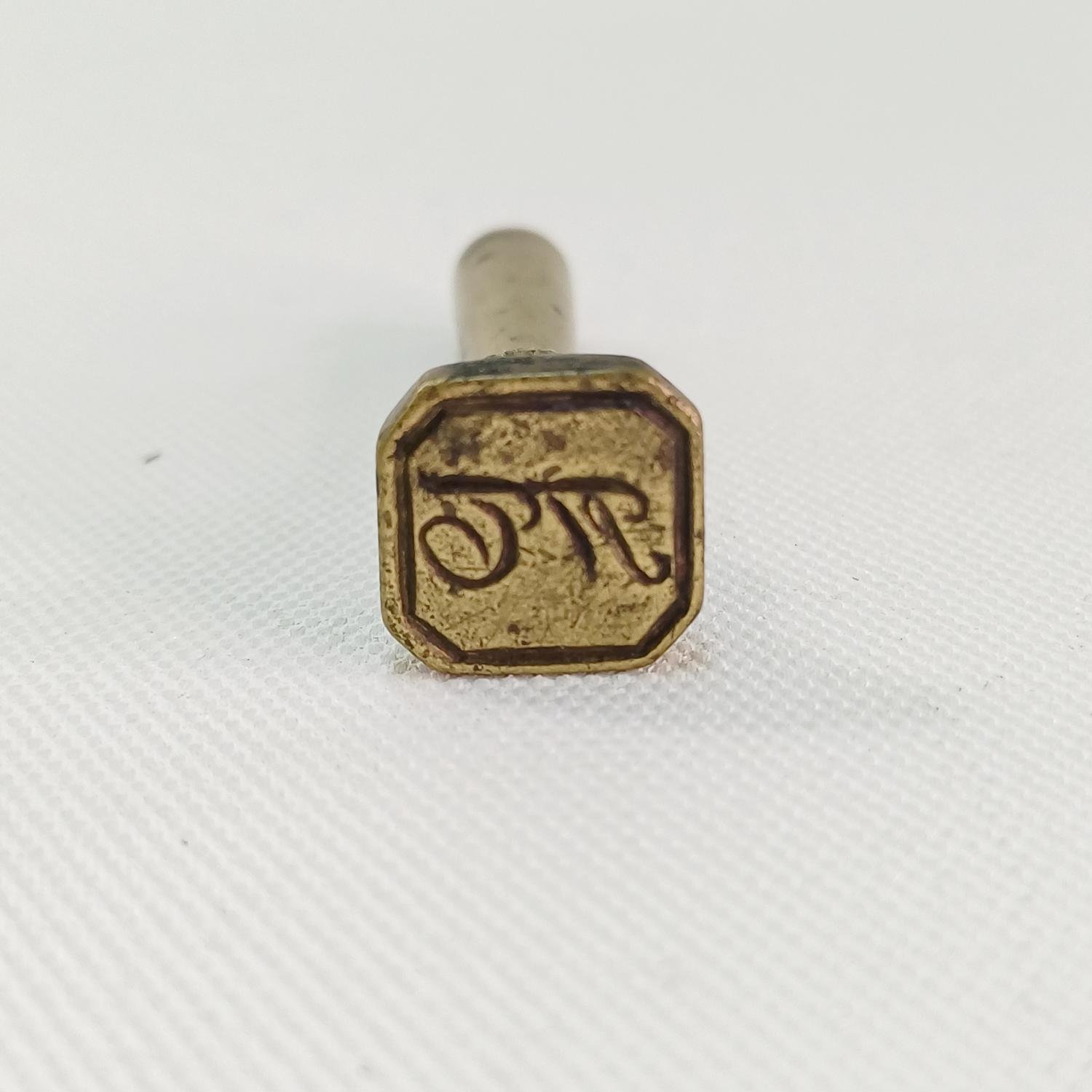 Μικρή σφραγίδα vintage από ορείχαλκο με καλλιγραφικά αρχικά Π.Τ. (πρώτο μισό 20ού αιώνα), εξαιρετικά σπάνια