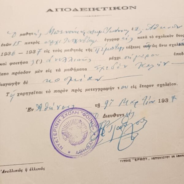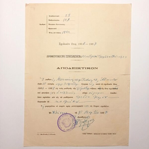 Φέρει την υπογραφή του Διευθυντή του σχολείου.