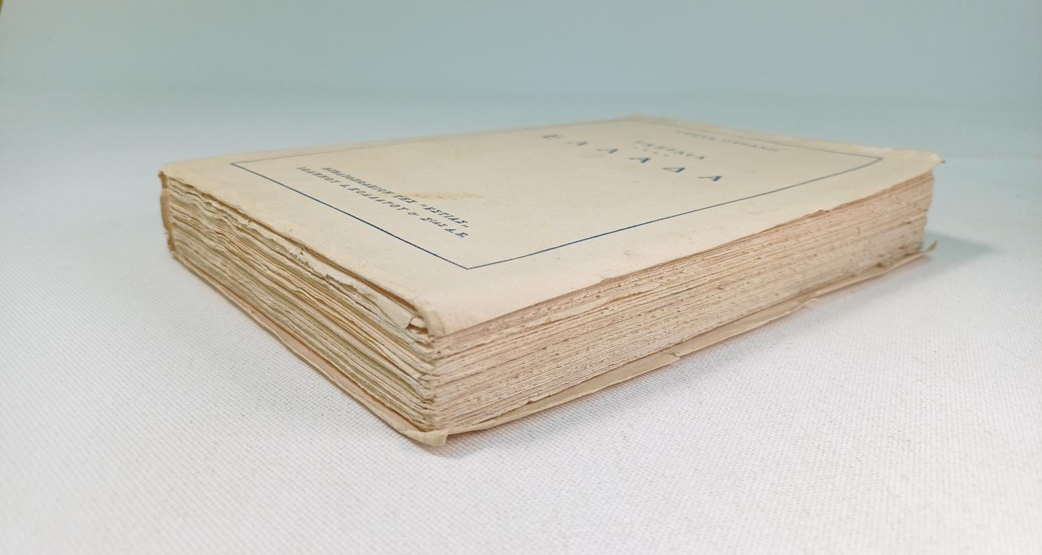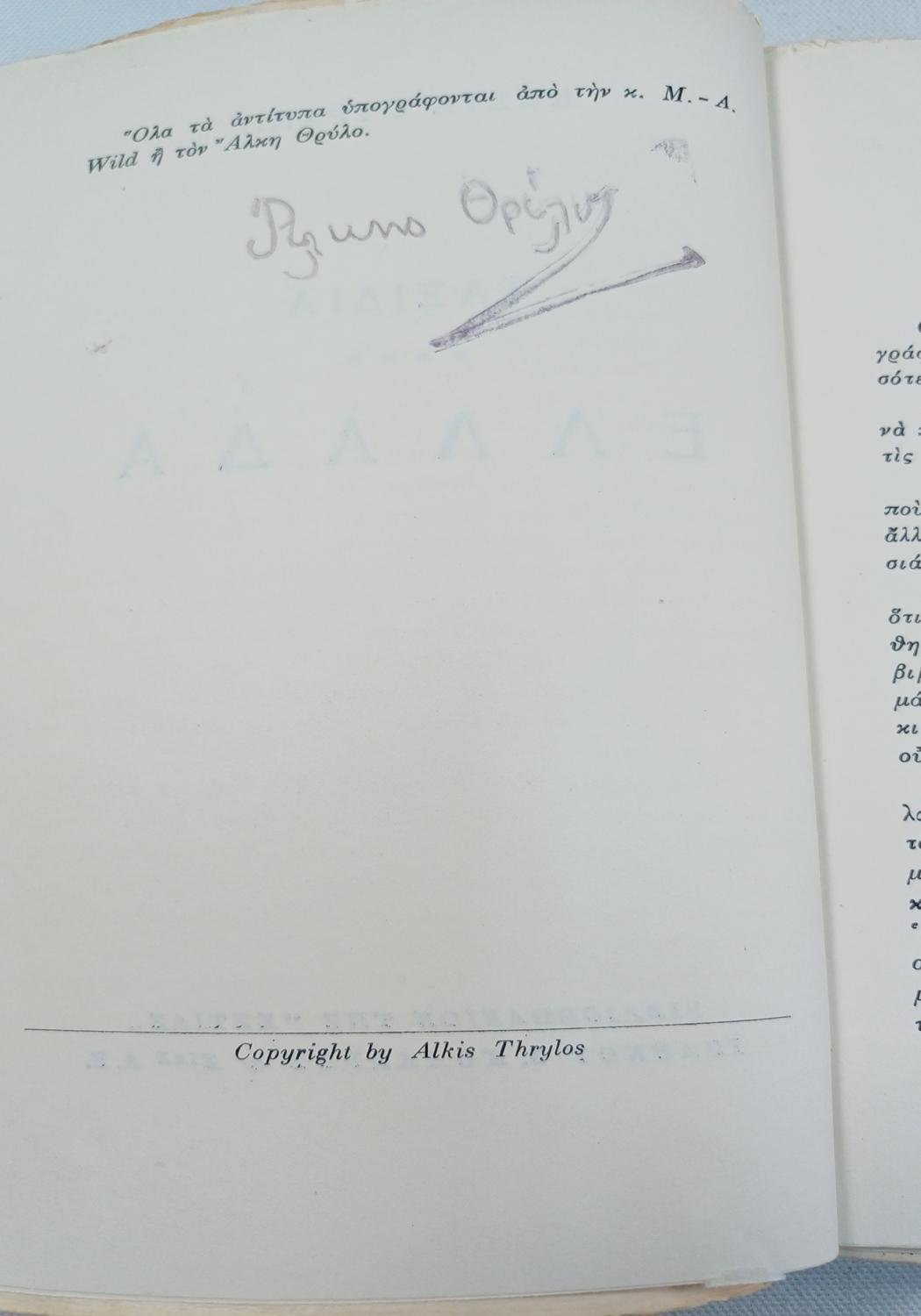 Το βιβλίο είναι μεταχειρισμένο με ορισμένη φθορά λόγω χρήσης και παλαιότητας. Φέρει την υπογραφή “Άλκης Θρύλος”.