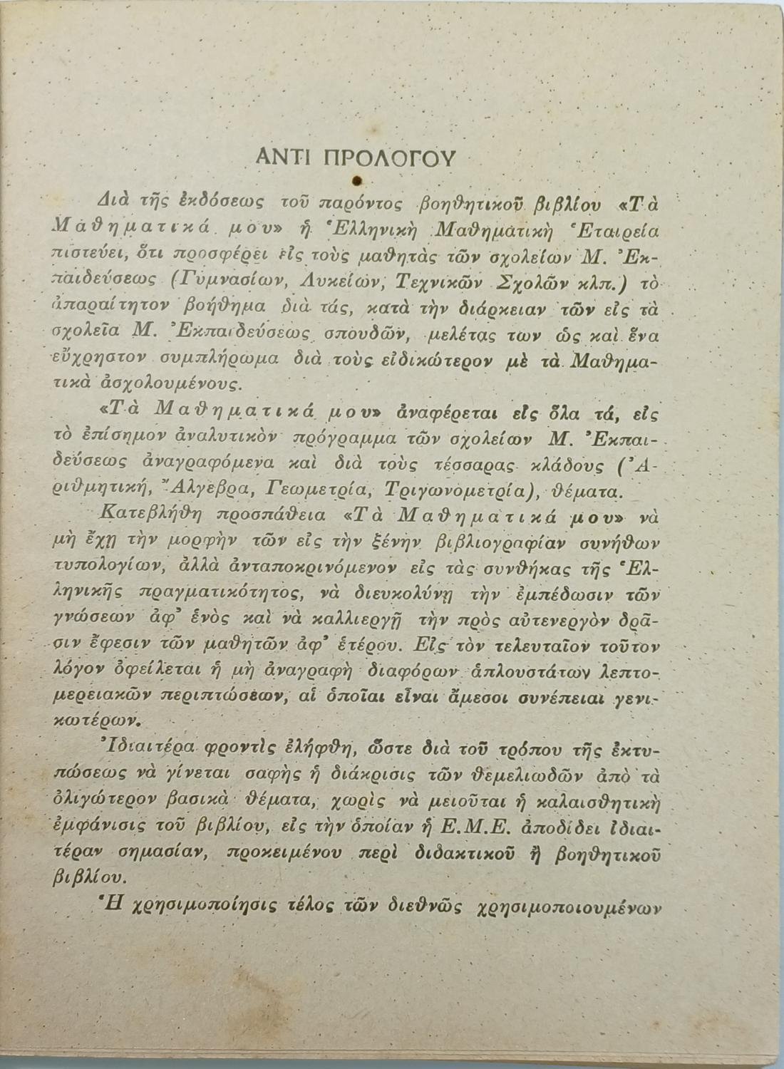 Το δυσεύρετο βιβλίο “Τα Μαθηματικά μου”, αποτελεί ένα μικρό σε διαστάσεις αλλά πλούσιο σε ύλη σχολικό εγχειρίδιο της εποχής εκείνης. Χρησιμοποιήθηκε ως μέρος του εκπαιδευτικού υλικού για τη διδασκαλία μαθηματικών εννοιών, όπως η έννοια του κύκλου.