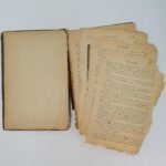 Σπάραγμα. Το βιβλίο είναι μεταχειρισμένο με φθορές λόγω χρήσης και παλαιότητας. Ξεκινά από την σελίδα 5 (λείπουν οι αρχικές σελίδες) και απουσιάζει το φύλλο με τις σελίδες 13-14. Έχει αποκολλημένη ράχη, μερική αποκόλληση εξωφύλλου και σελίδων (έως σελ. 10). Υπάρχουν μικρά σκισίματα.