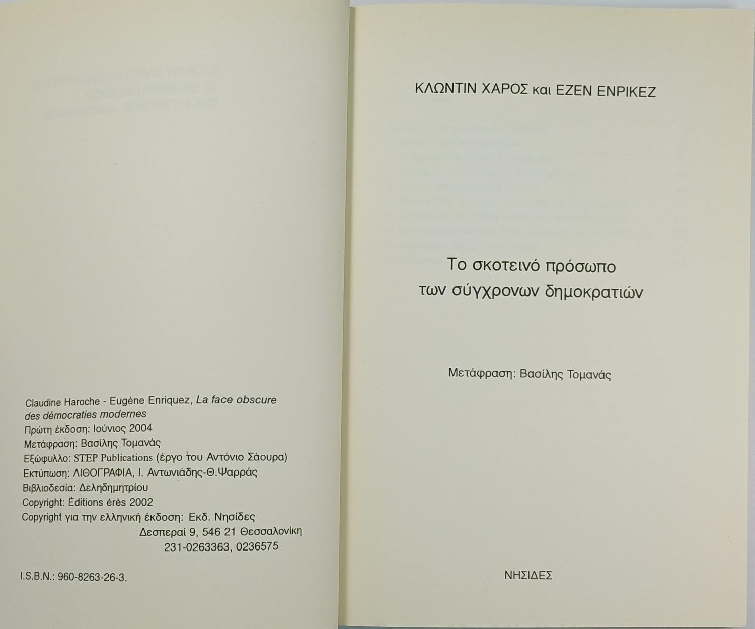 “Το σκοτεινό πρόσωπο των σύγχρονων δημοκρατιών” Cl. Haroche, Eug. Enriquez (2004)