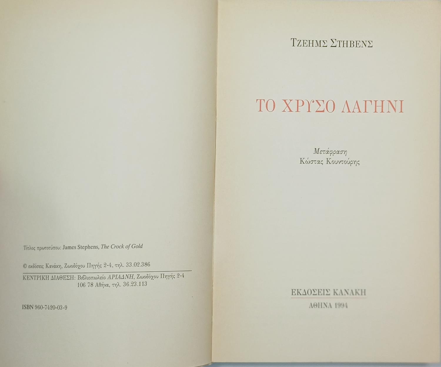 “Το χρυσό λαγήνι” Τζέημς Στήβενς (1994)