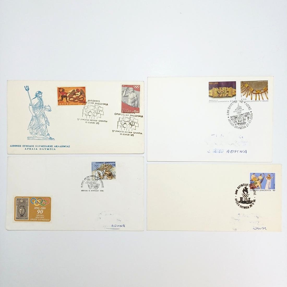 4 φάκελοι φιλοτελισμού με θέμα τους Ολυμπιακούς αγώνες στην Αρχαία Ολυμπία, από τα Ελληνικά Ταχυδρομεία (ΕΛΤΑ).