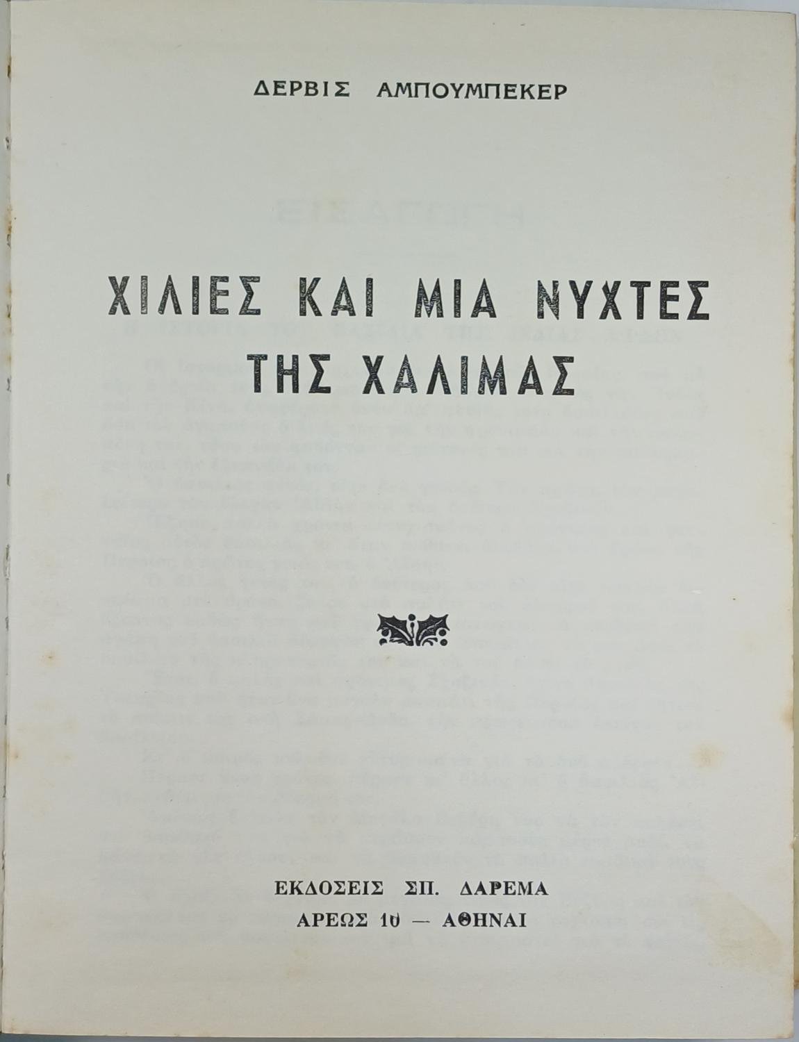 “Χίλιες και μια νύχτες της Χαλιμάς” Δερβίς Αμπουμπεκέρ
