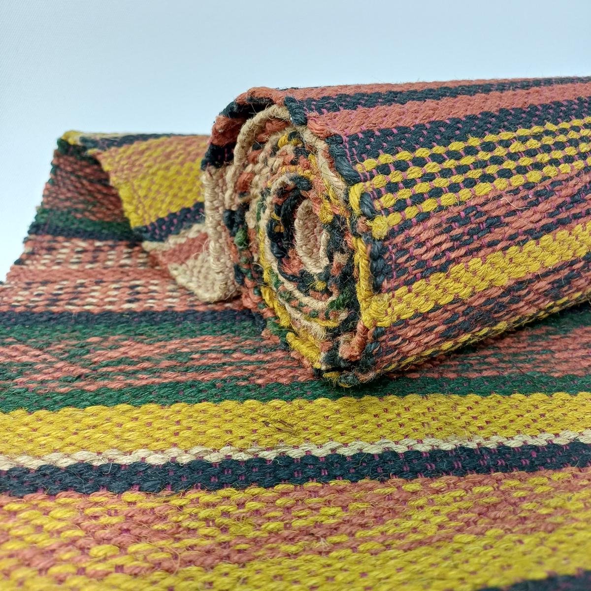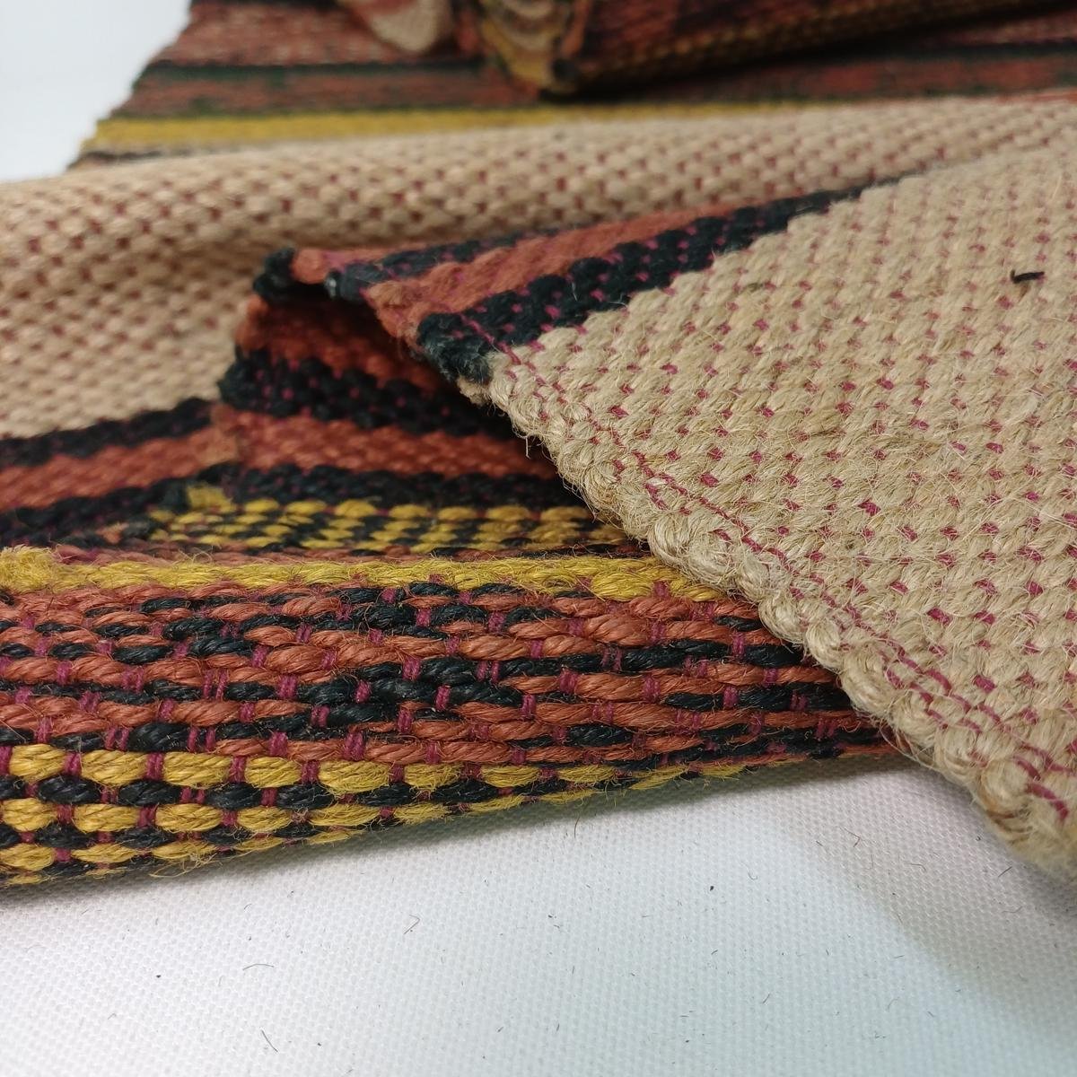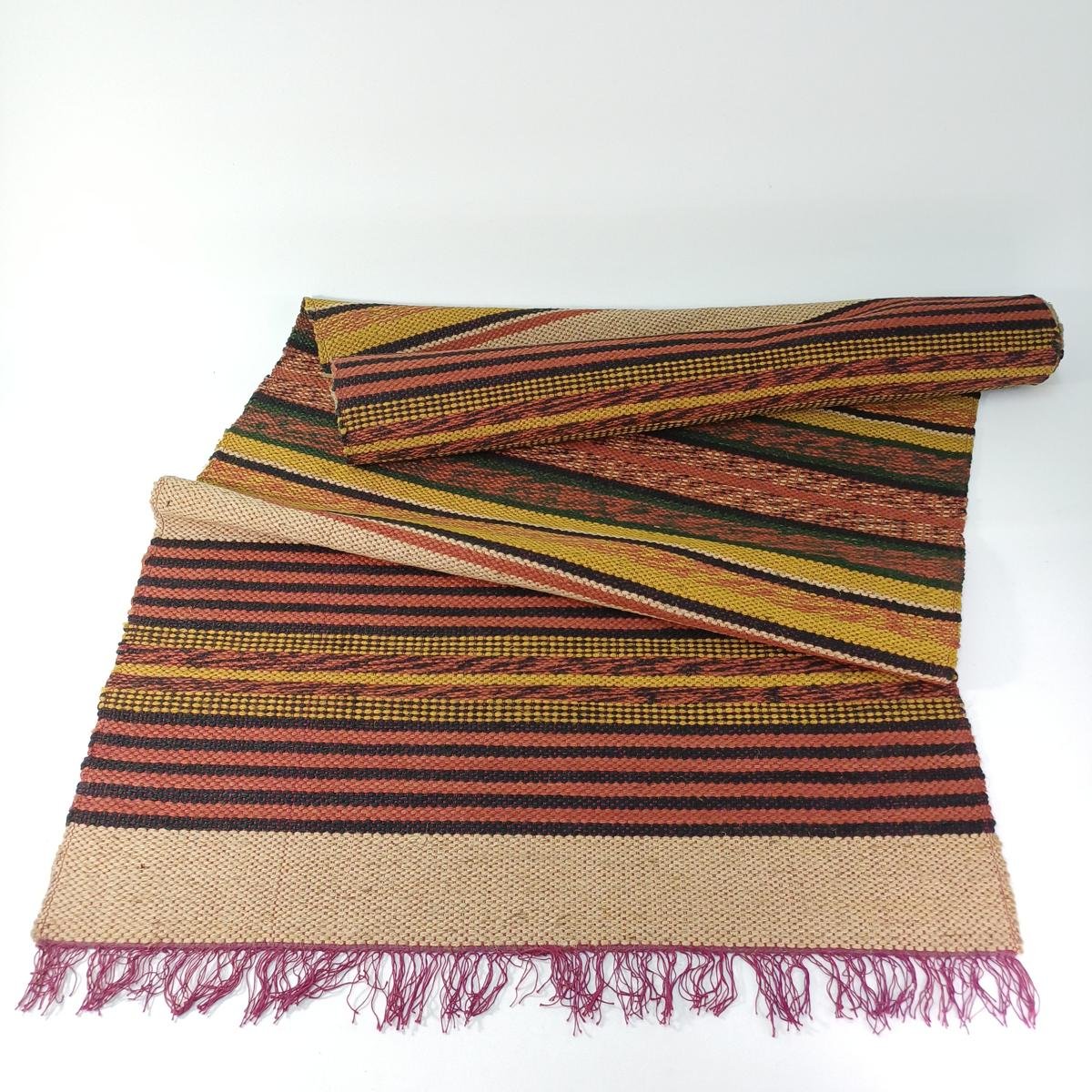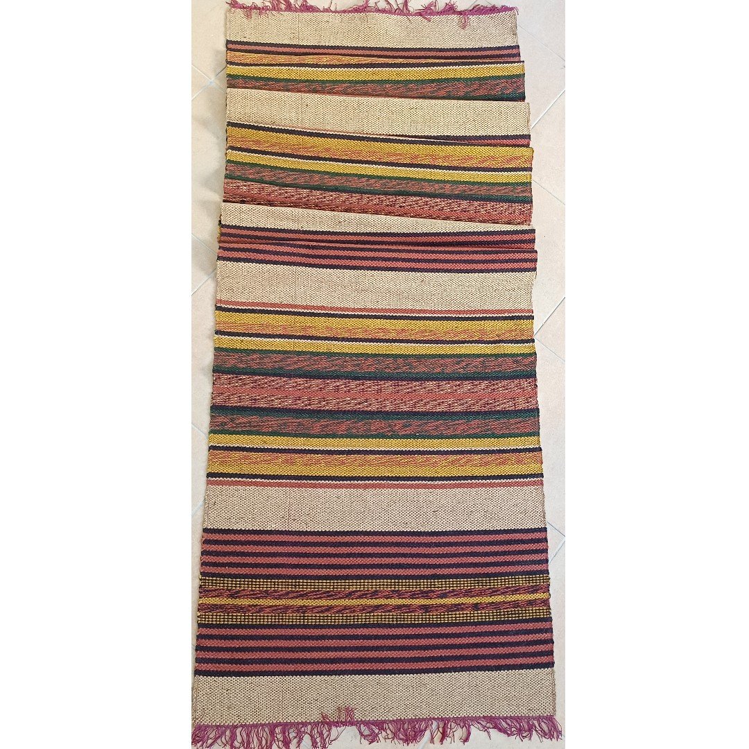 Παραδοσιακός διάδρομος σε γήινες αποχρώσεις και κρόσσια στις μικρές διαστάσεις. Οι διαστάσεις του είναι 3,20 * 0,75 m. Είναι σε καλή κατάσταση χωρίς σκισίματα.